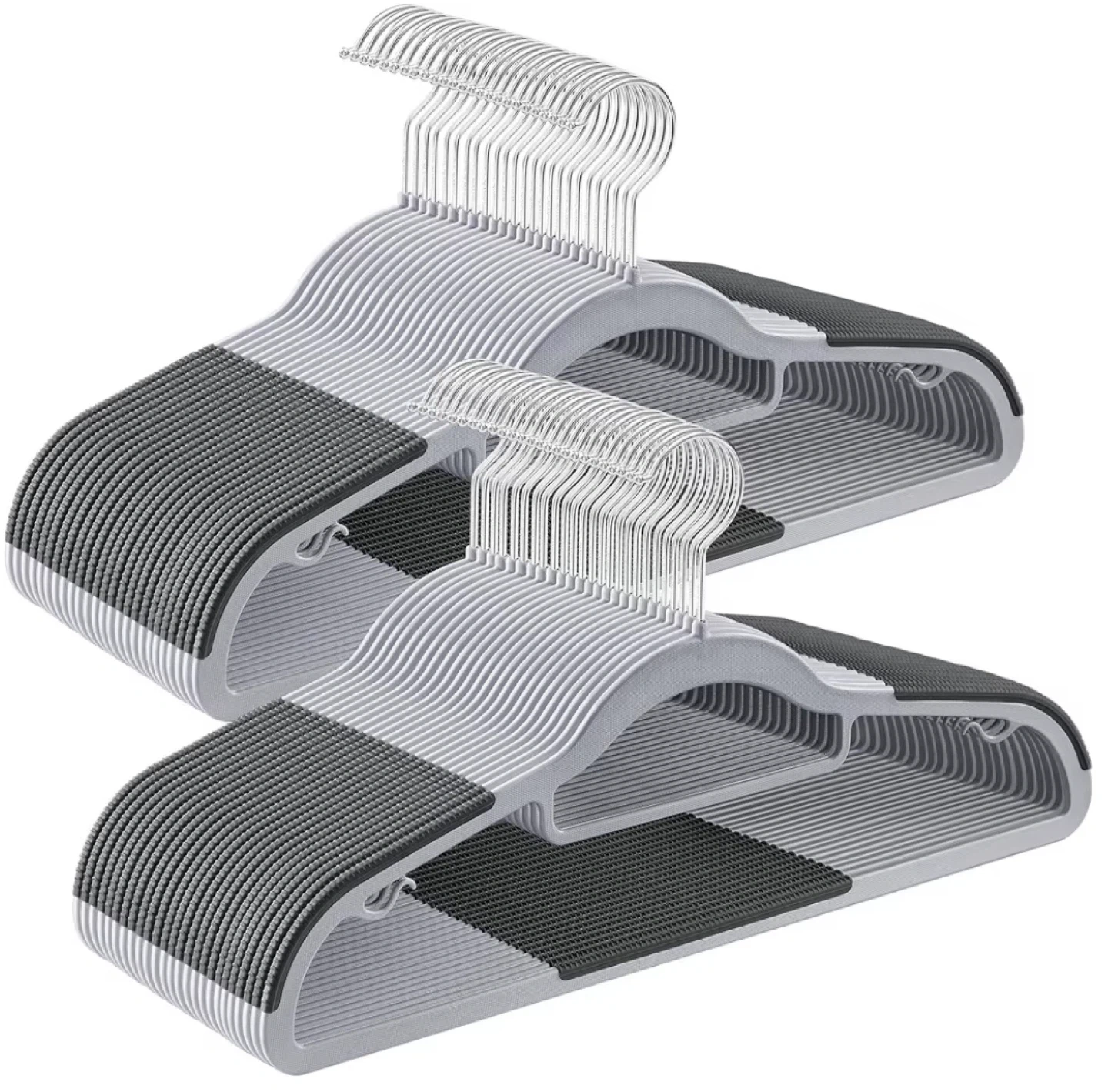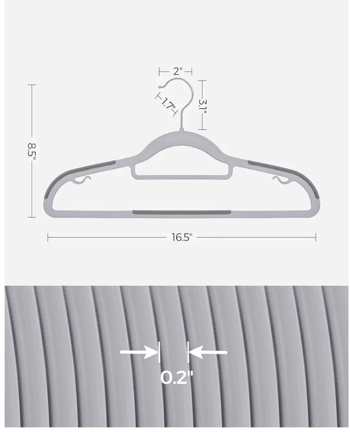 These clothes hangers are designed to save closet space with their 0.2" thickness. They also feature curved shoulders to keep your clothes in perfect condition without annoying marks, and 360° swivel hooks to allow you to hang and grab clothes with ease. The non-slip design with rubber strips increases friction to prevent slipping