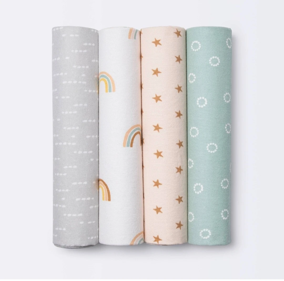 81Selling a set of four Cloud Island flannel blankets! They're made of 100% cotton and are super soft. Perfect for use as receiving blankets, stroller covers, burp cloths, nursing covers, and more. They come in a variety of cute patterns. The original box is included!