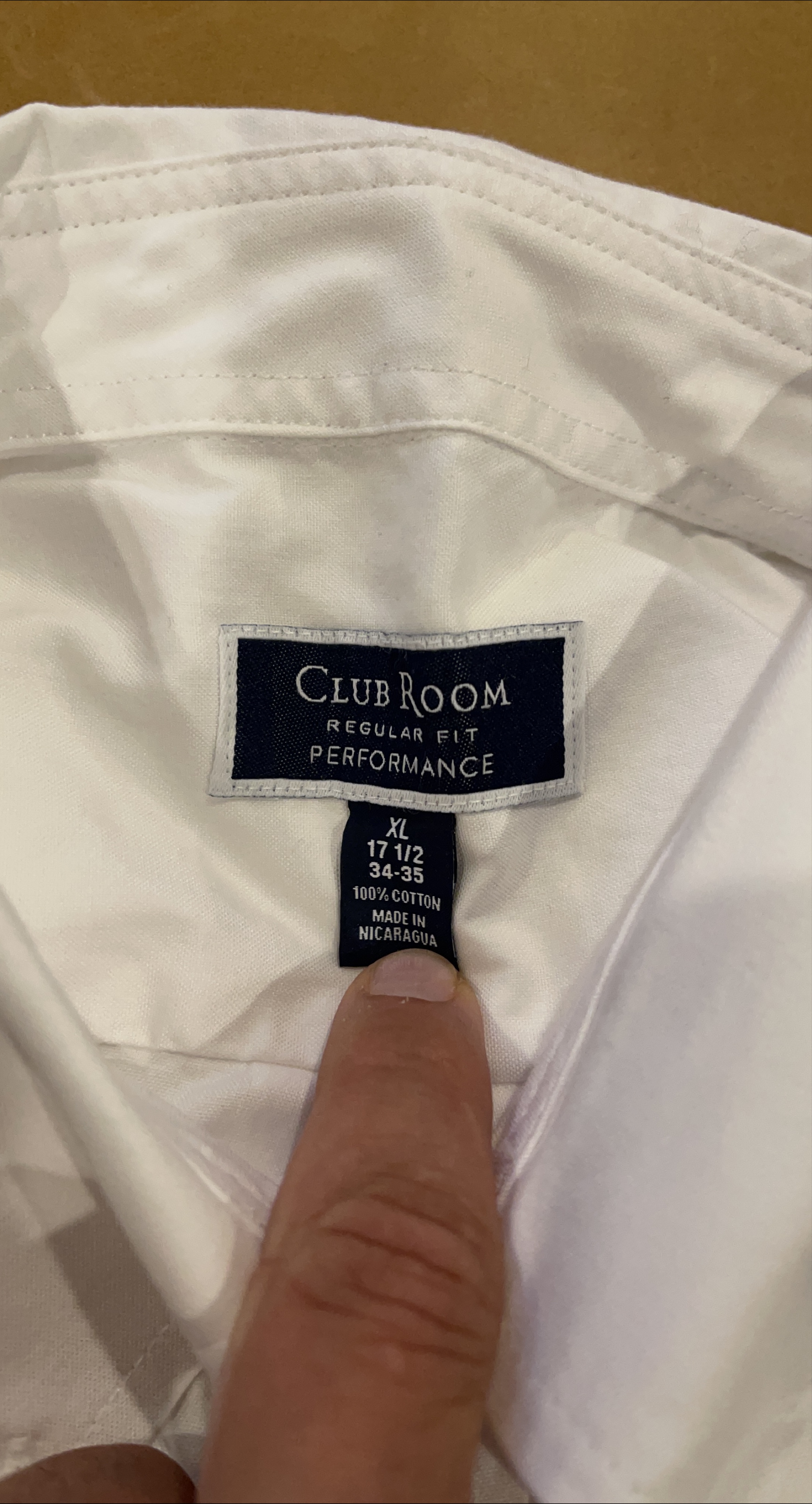 Selling a Club Room white dress shirt in excellent condition! It's a regular fit, performance shirt, size XL (17-1/2, 34-35). Made from 100% cotton and feels great
