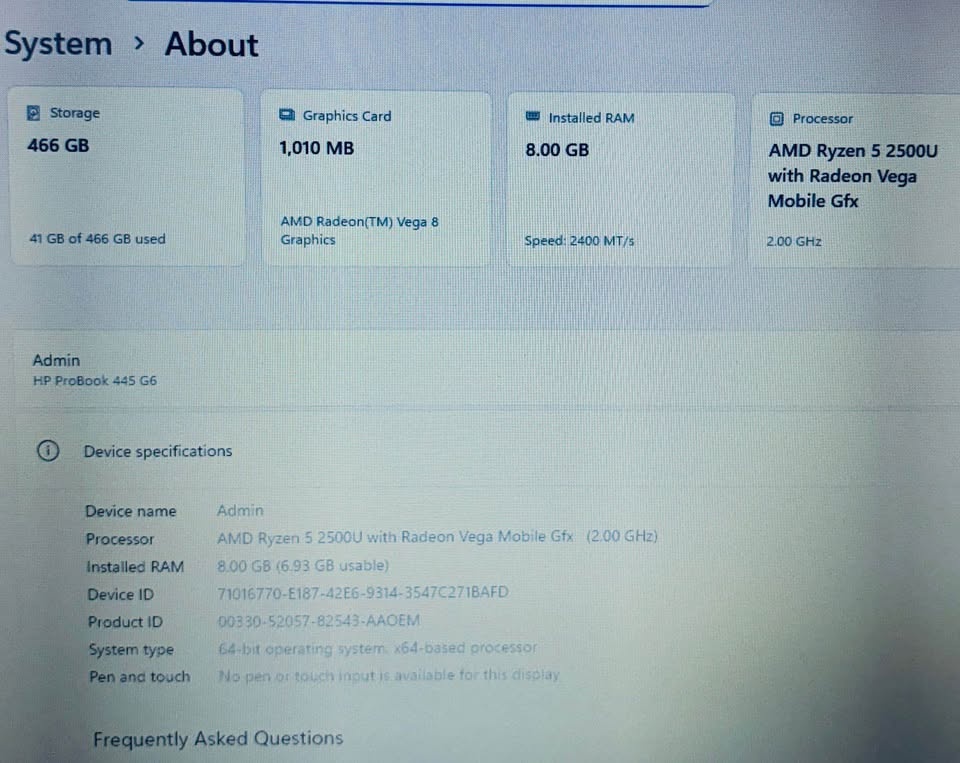 I am selling HP Probook, 445 G6, Windows 11 Pro Laptop. I factory reset it, so it's like new and all accounts and data is removed.