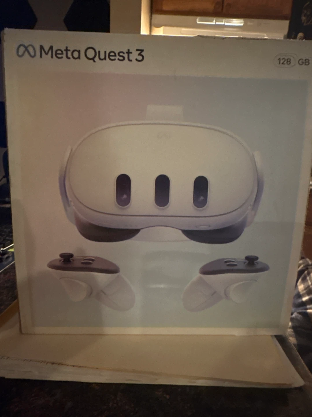 Meta Quest 3 VR headset with 128 GB storage. Comes with controllers. Explore immersive virtual worlds! Like new condition everything is mint condition works as expected and factory reset. Only used a handful of times