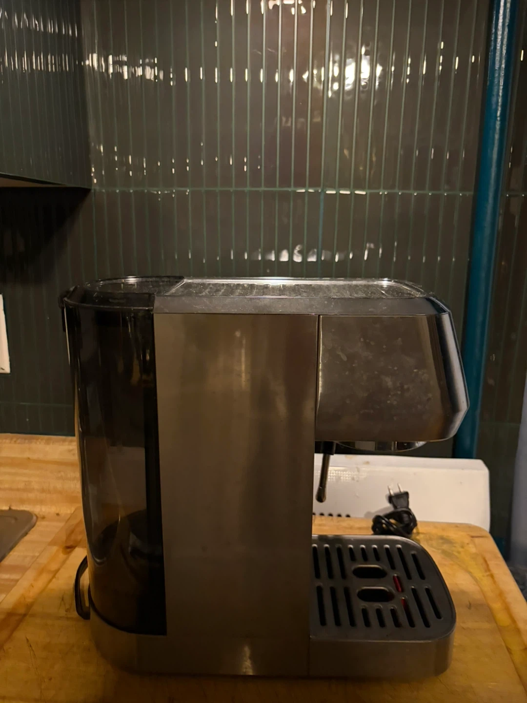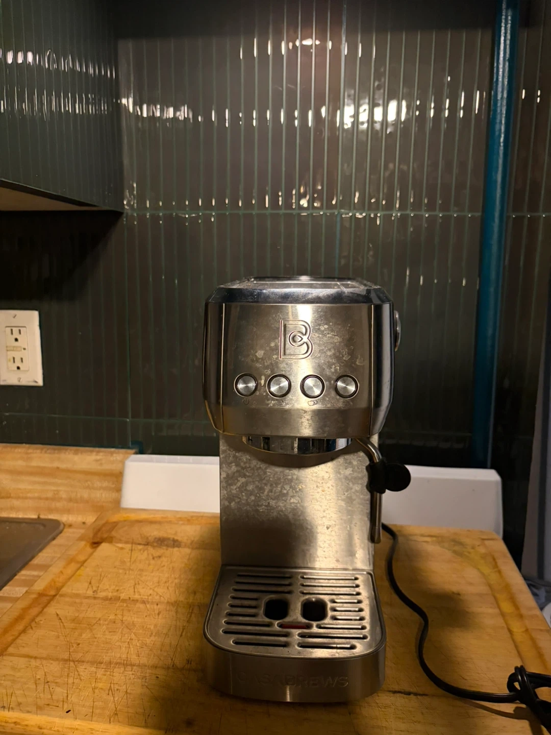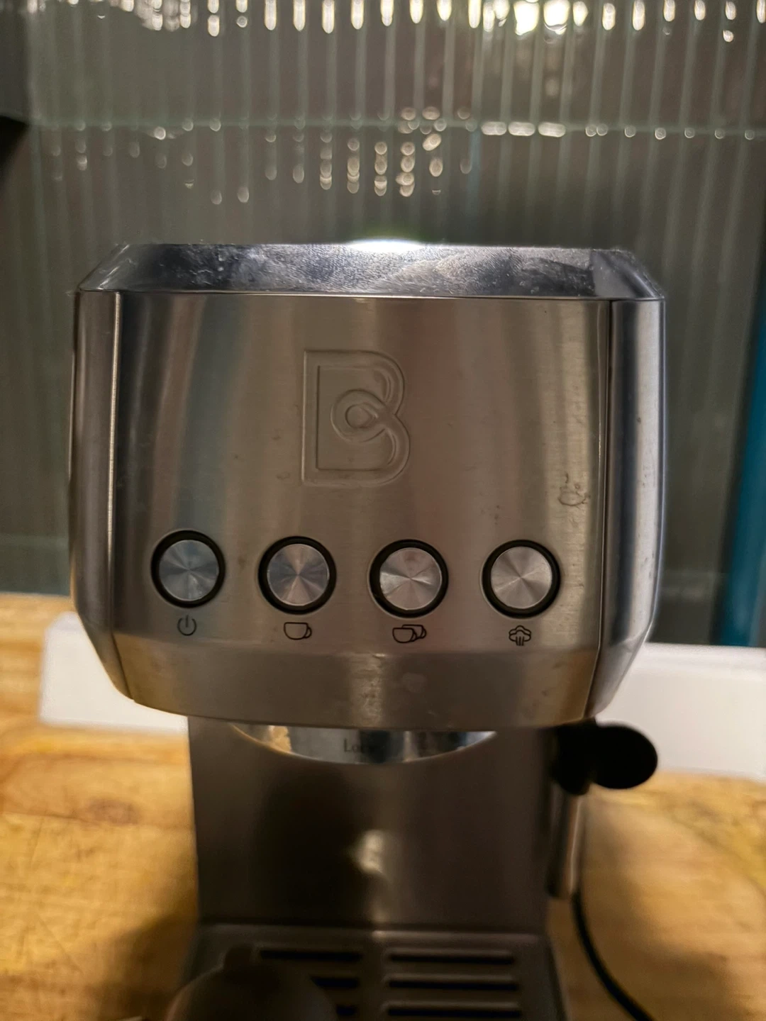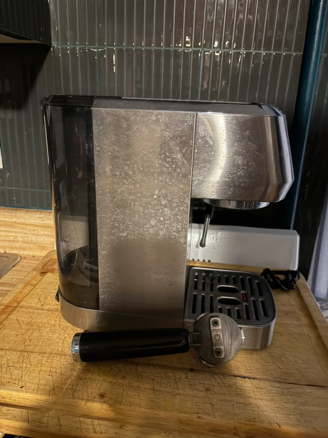 CASABREWS espresso machine with a stainless steel finish. Comes with a portafilter. Great for making lattes and cappuccinos!