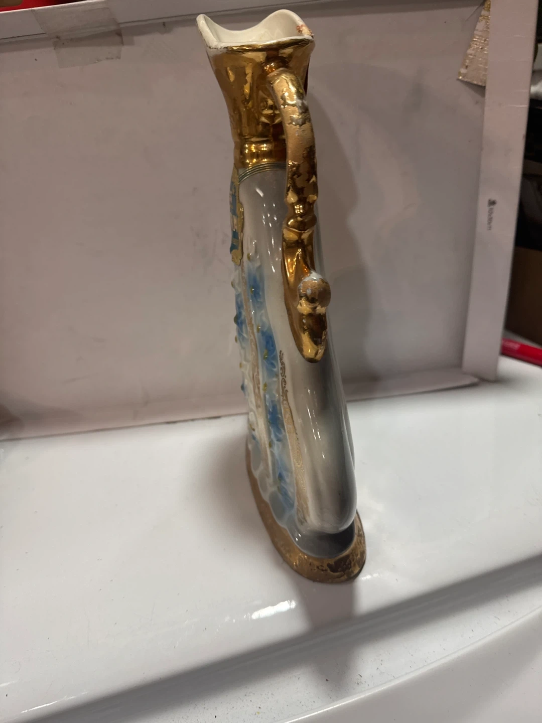 It is made of genuine Regal China and features a blue and white floral design with gold gilt accents.