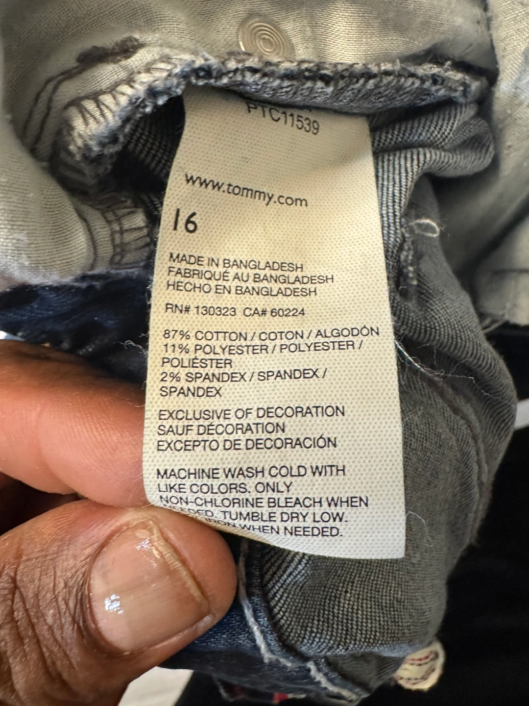 Tommy Hilfiger jeans in a dark wash denim! They are a size 16 and made of 87% cotton, 11% polyester, and 2% spandex
