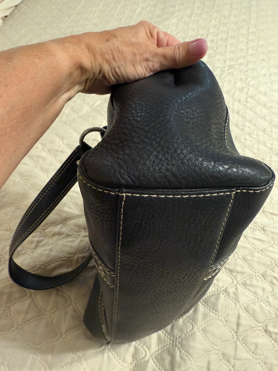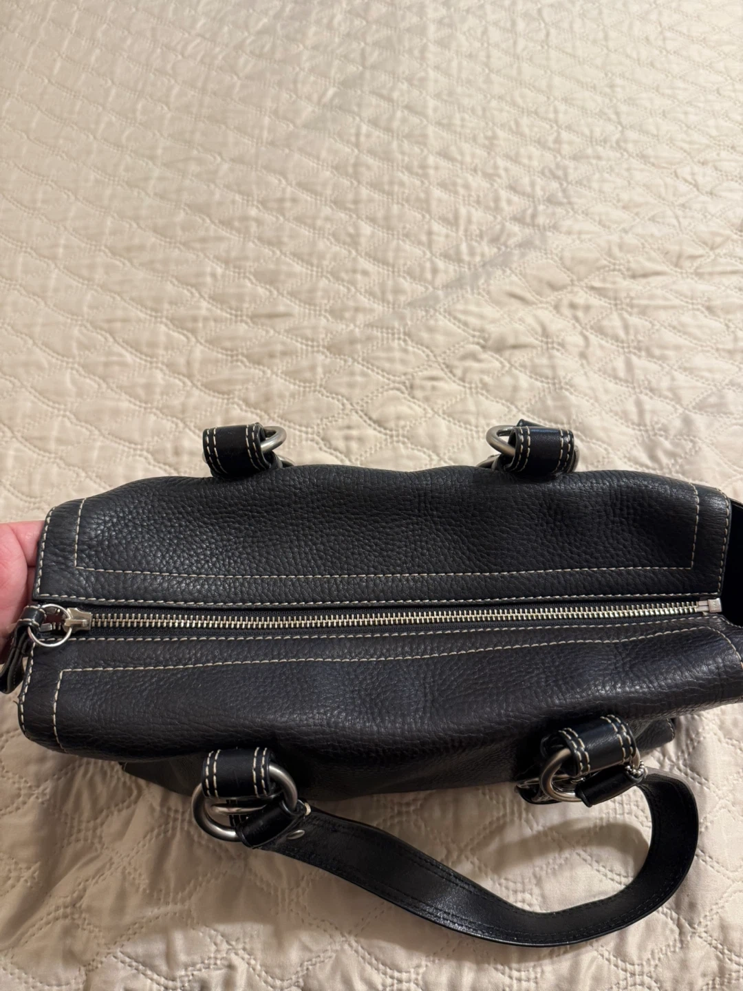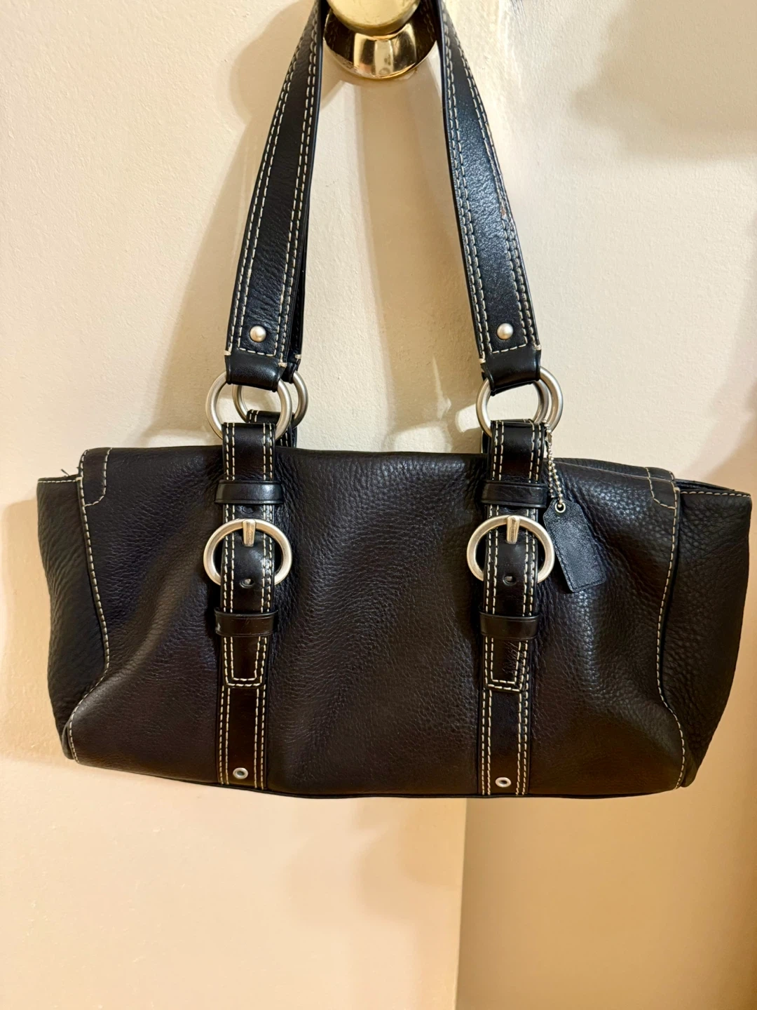 Selling a Coach black leather satchel bag, model number F0762-F10887. It's in great condition and ready for a new home! The bag features a zipper closure and silver hardware.