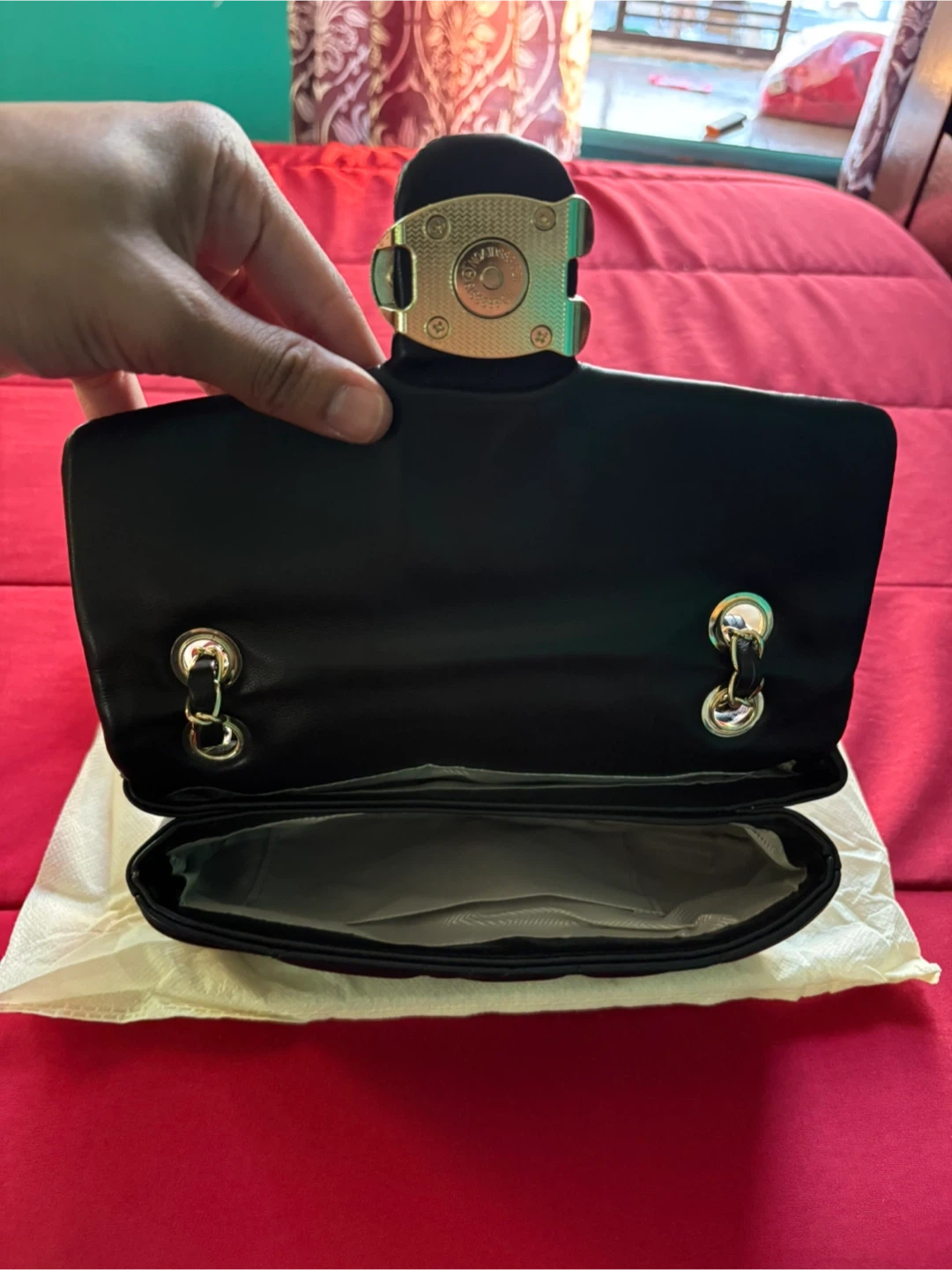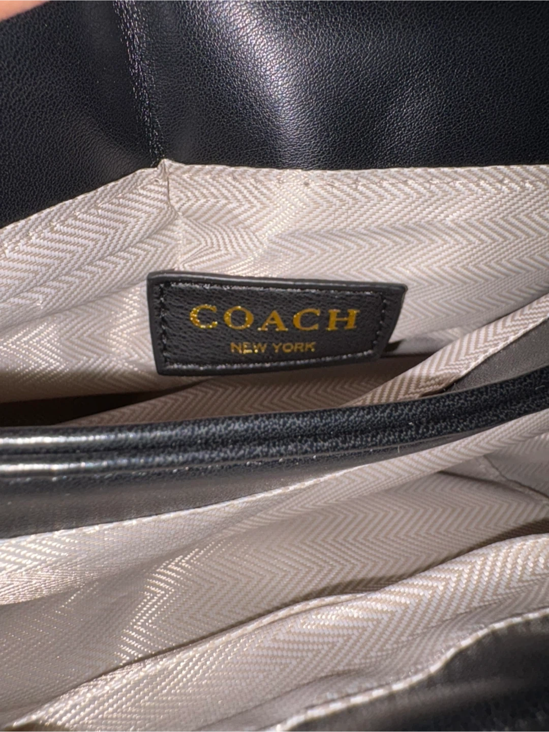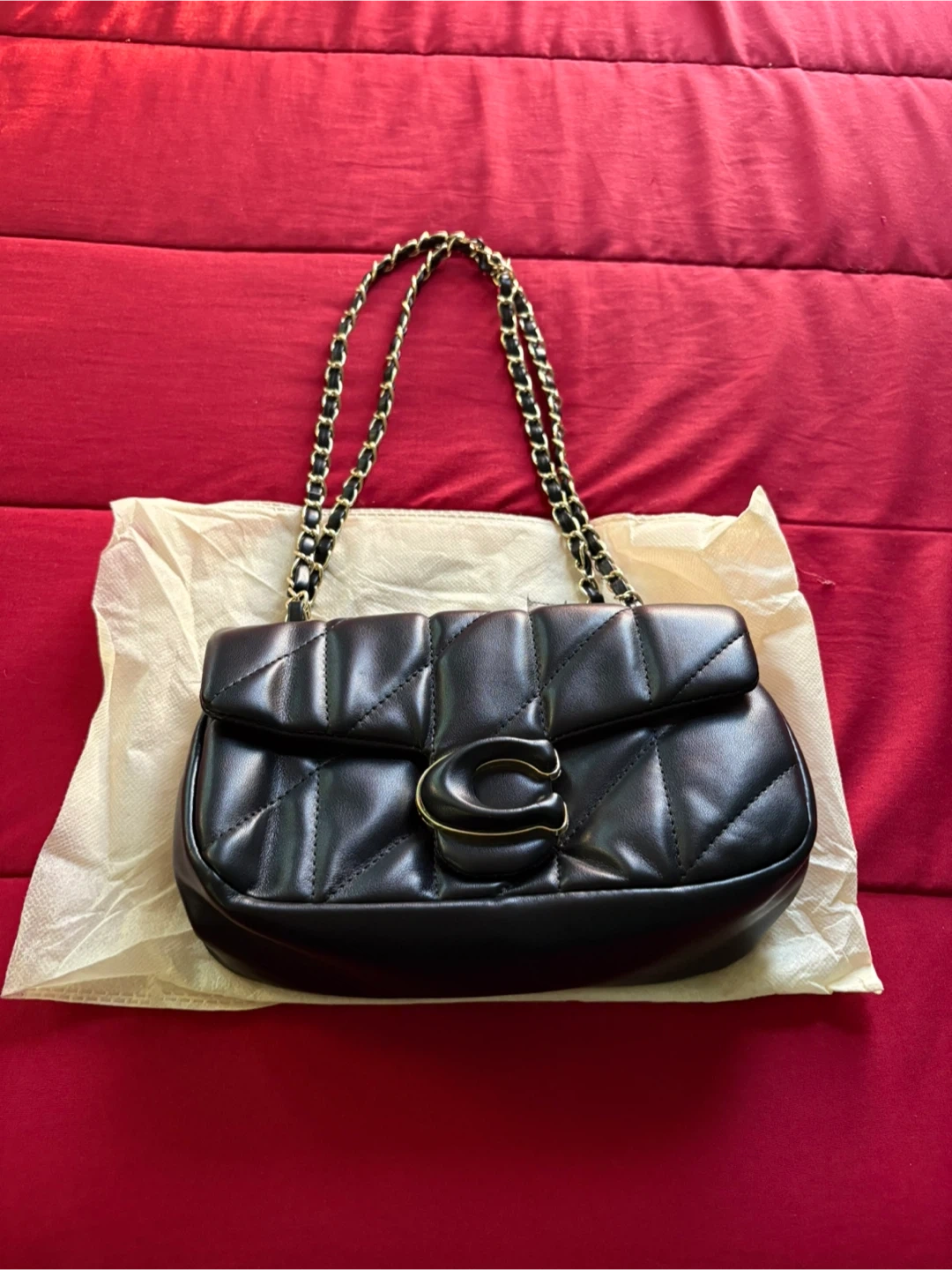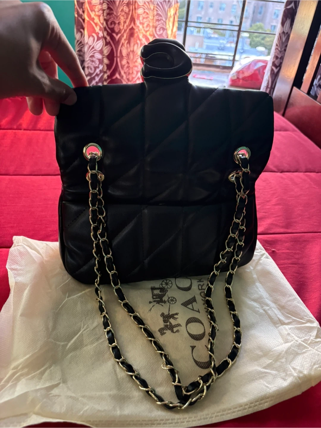 Selling a stylish black Coach shoulder bag! It features a quilted design with a gold chain strap and the Coach logo. Great for adding a touch of elegance to any outfit