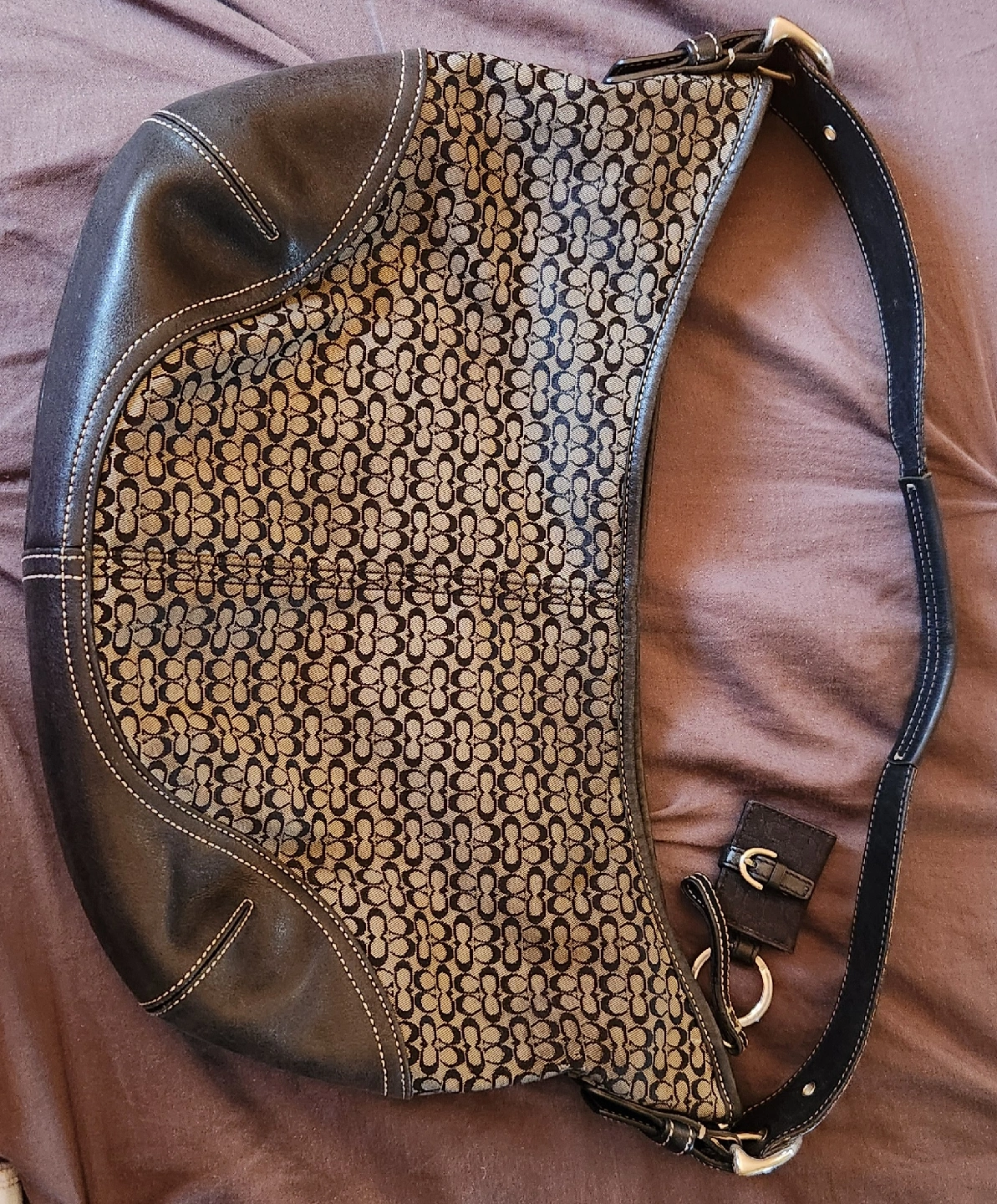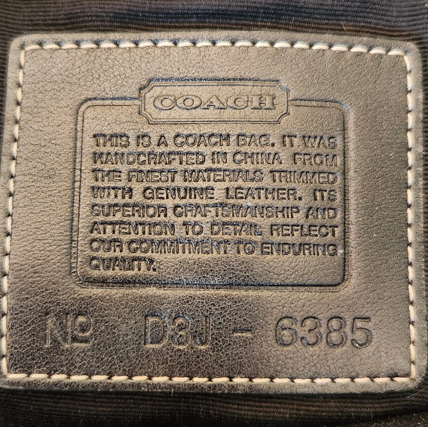 65This is a Coach bag handcrafted in China from the finest materials trimmed with genuine leather. Superior craftsmanship and attention to detail reflect their commitment to enduring quality. The model number is D3J-6385. Bag has been used, but is in good condition.