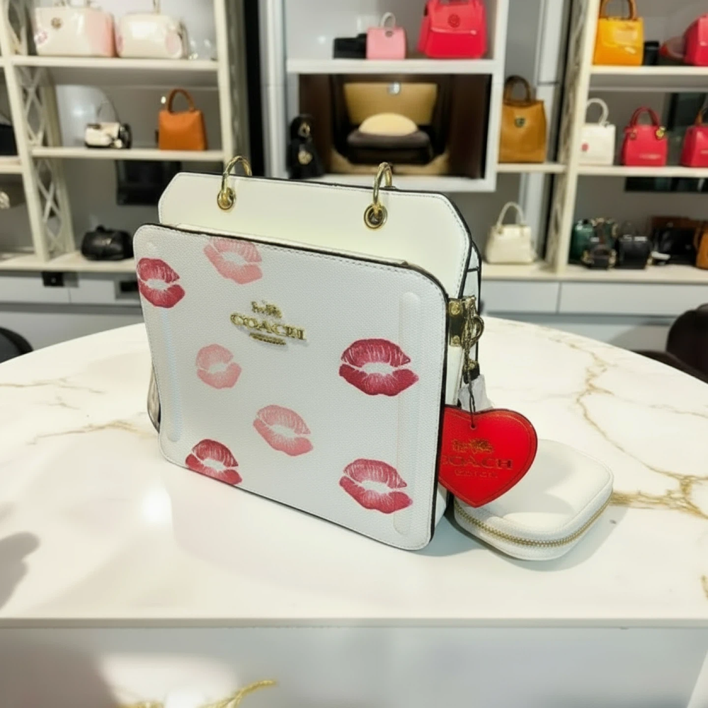 Selling a Coach Dempsey Carryall 20 with the Kissing C graphic! It's a super cute and stylish bag. The bag features a unique design with the iconic Coach logo and a playful kissing C graphic. Perfect for adding a touch of fun to any outfit