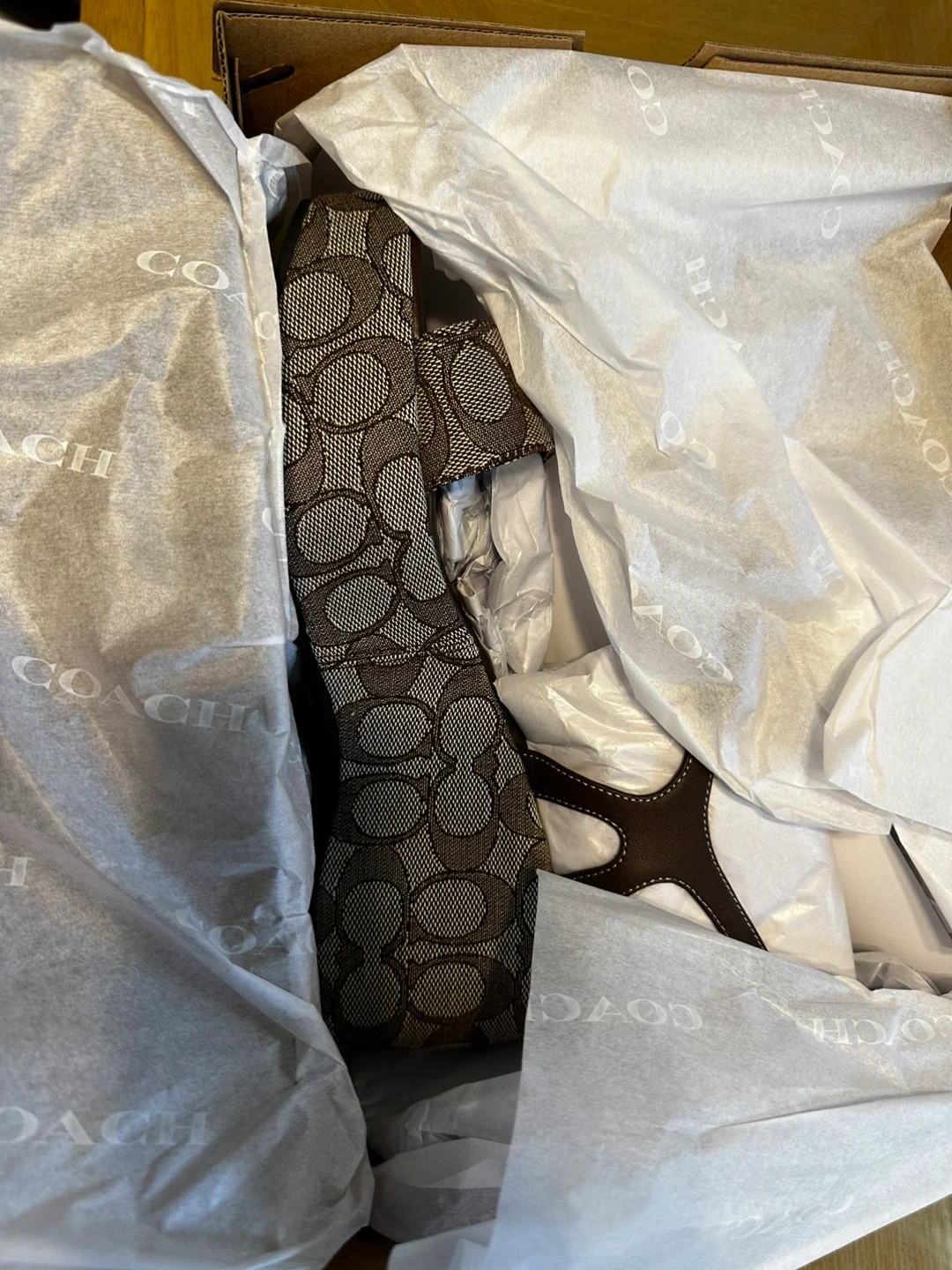 Selling a pair of Coach Gale Sig Sandals in size 8B! They are brand new and come in the original box. These sandals feature a signature Coach design. Originally bought for $240 CAD