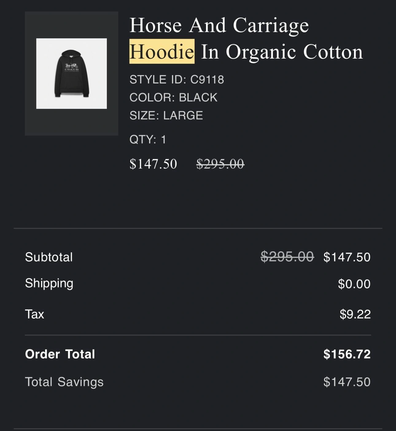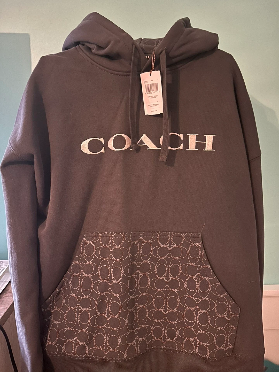 Coach hoodie men’s brand new with tags black ( I know camera shows it differently but it’s black ) with grey emblems size large 100% authentic from coach Accepts cash only