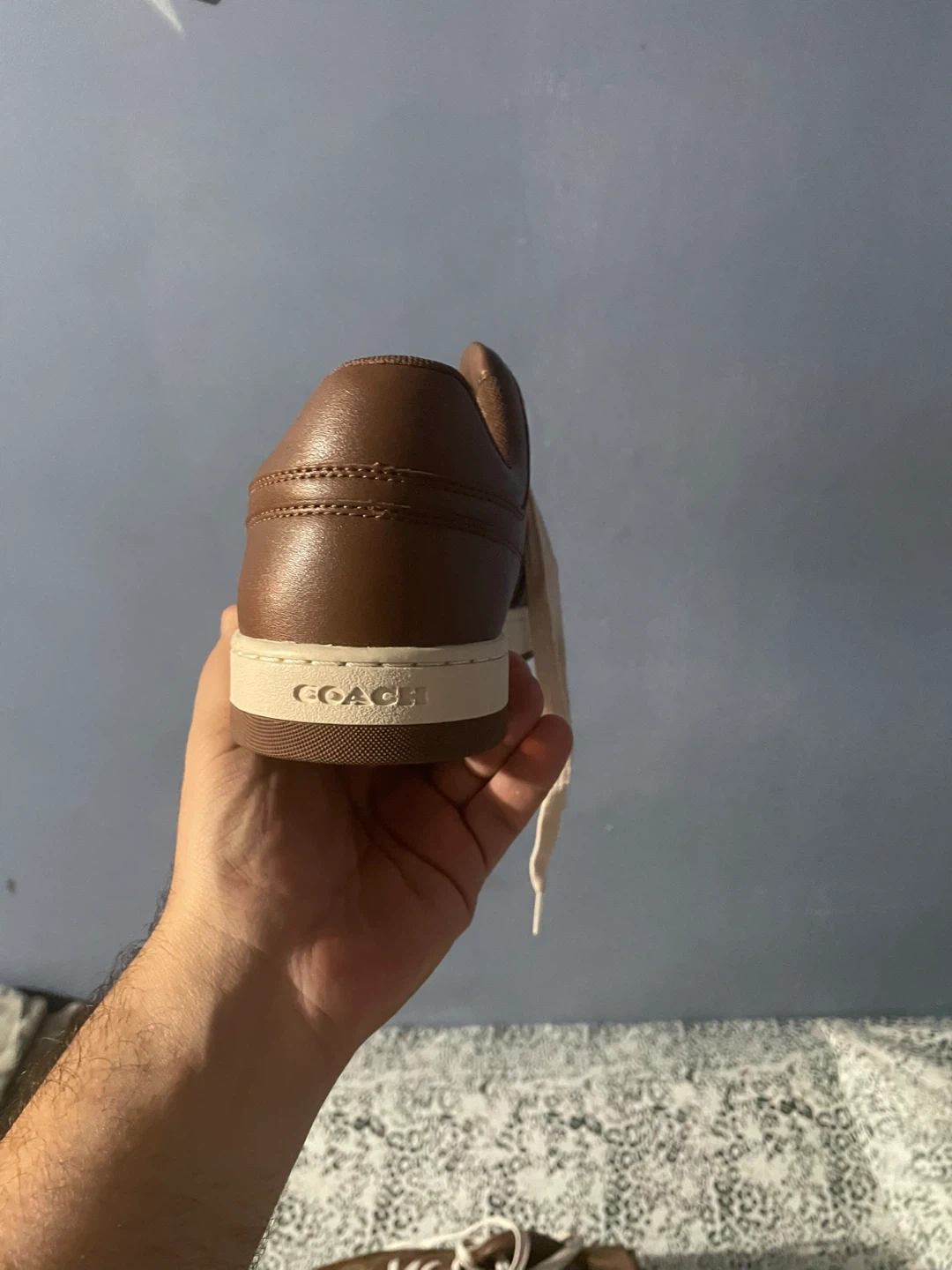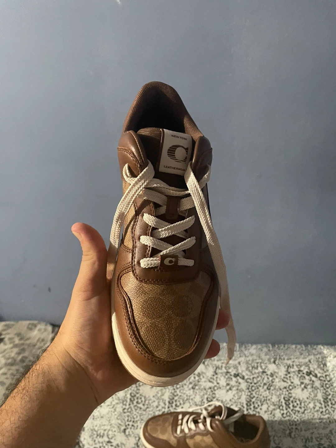 20Selling a pair of Coach leather sneakers in brown. They are in great condition and come with the original box. Perfect for casual wear!