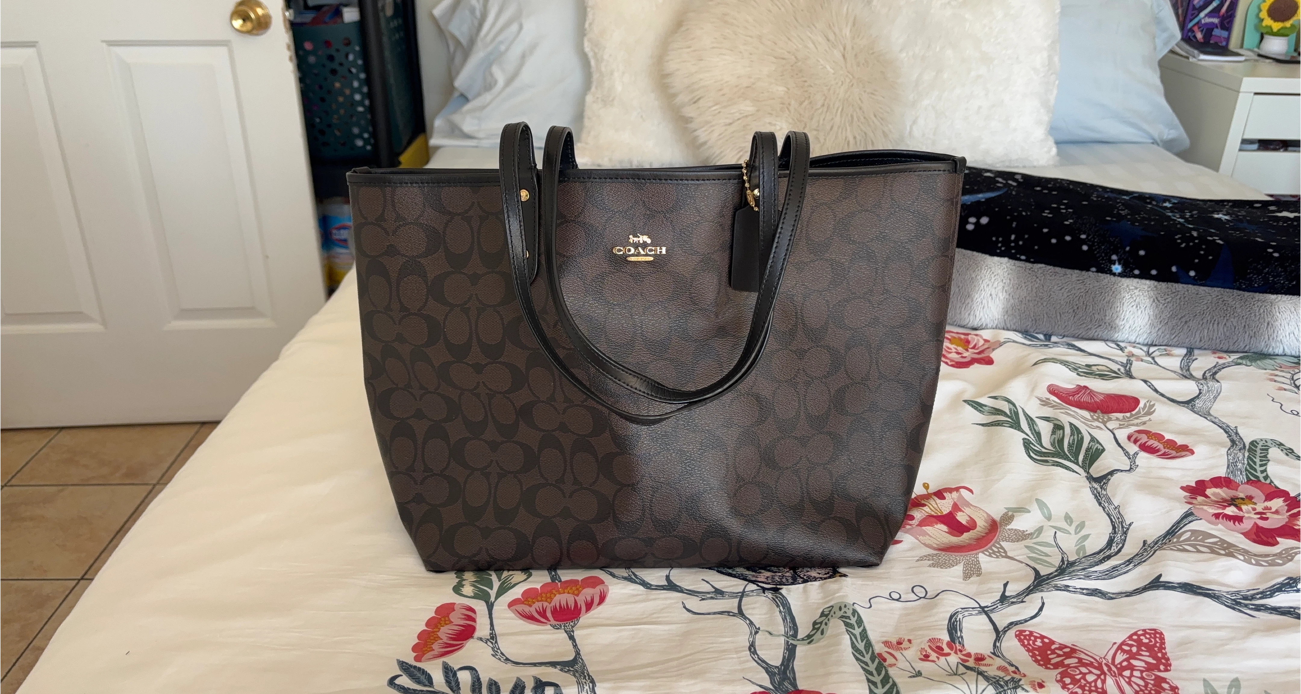 Selling a Coach Reversible City Tote in a classic brown and black color combination. It's in great condition and perfect for everyday use! The tote features the iconic Coach logo pattern. A stylish and practical bag!