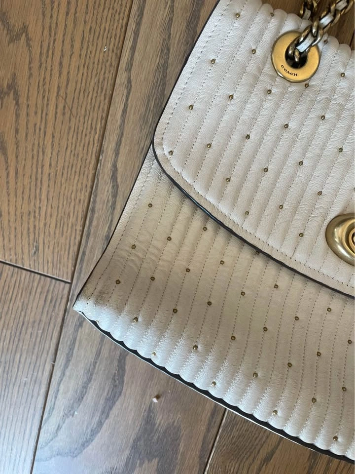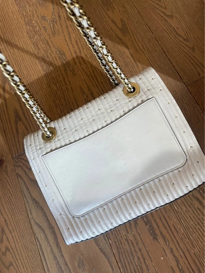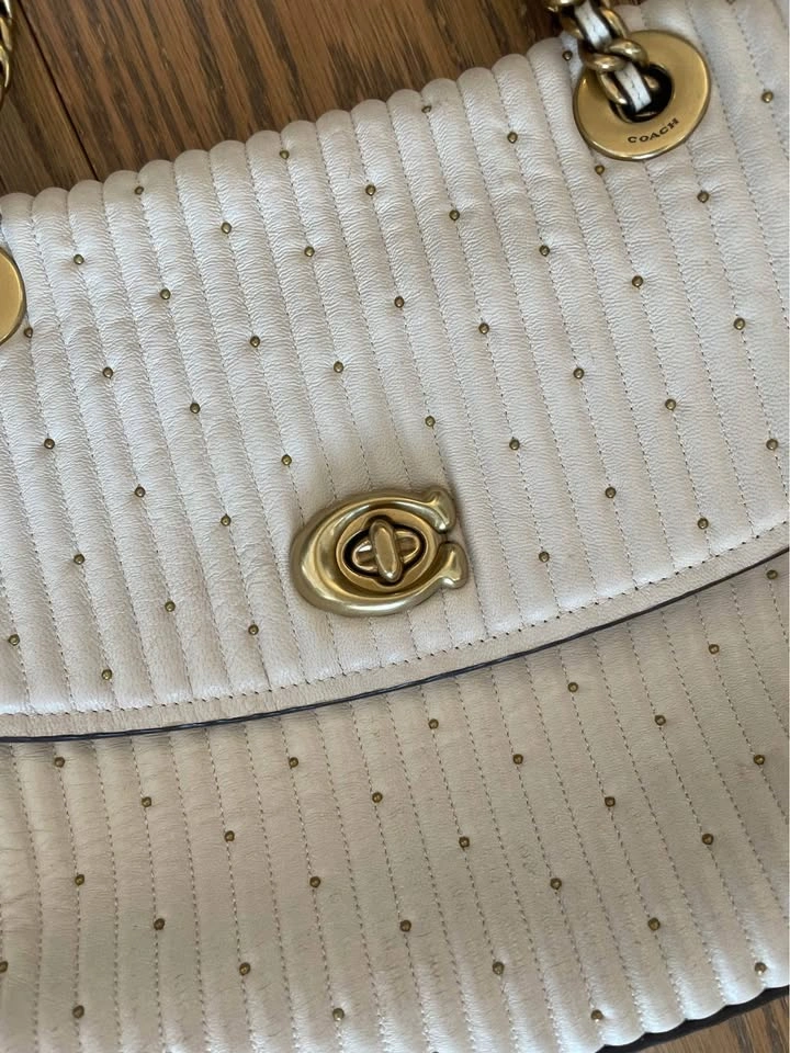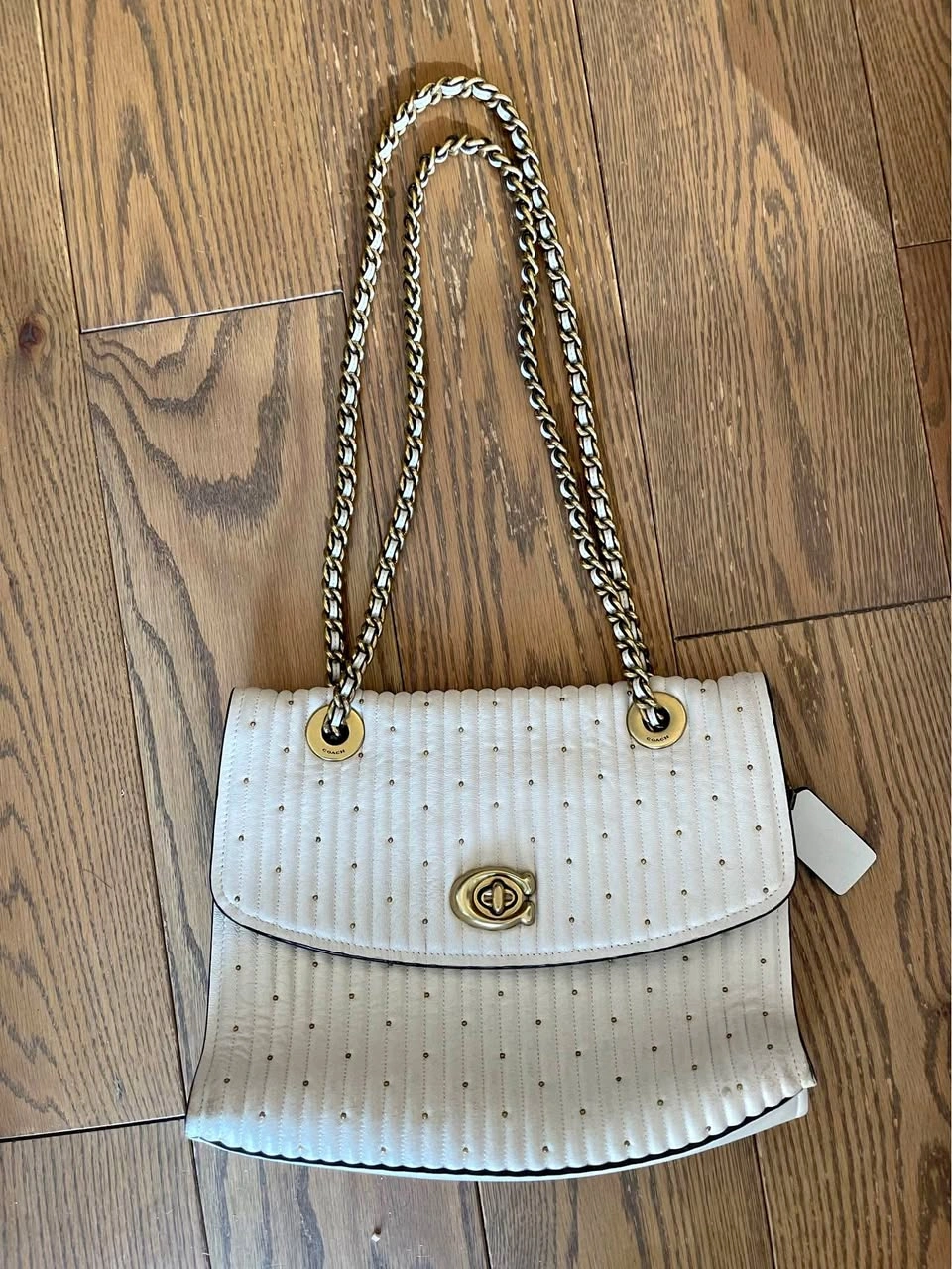 74Closet clean out sale. Coach shoulder bag, white with gold pearls and chain. Original price $495 plus tax. Pick up only