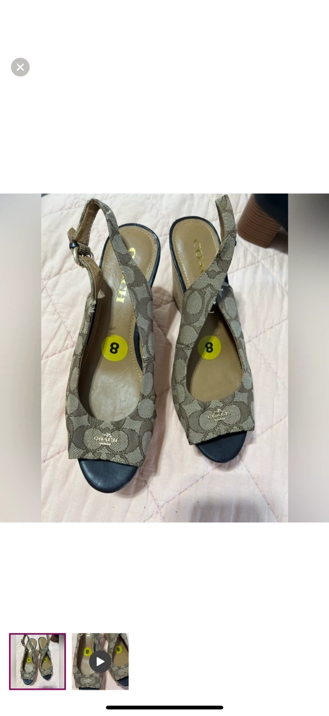 Selling a pair of Coach slingback heels in a women's size 8. They feature the classic Coach logo pattern. Perfect for dressing up or down!