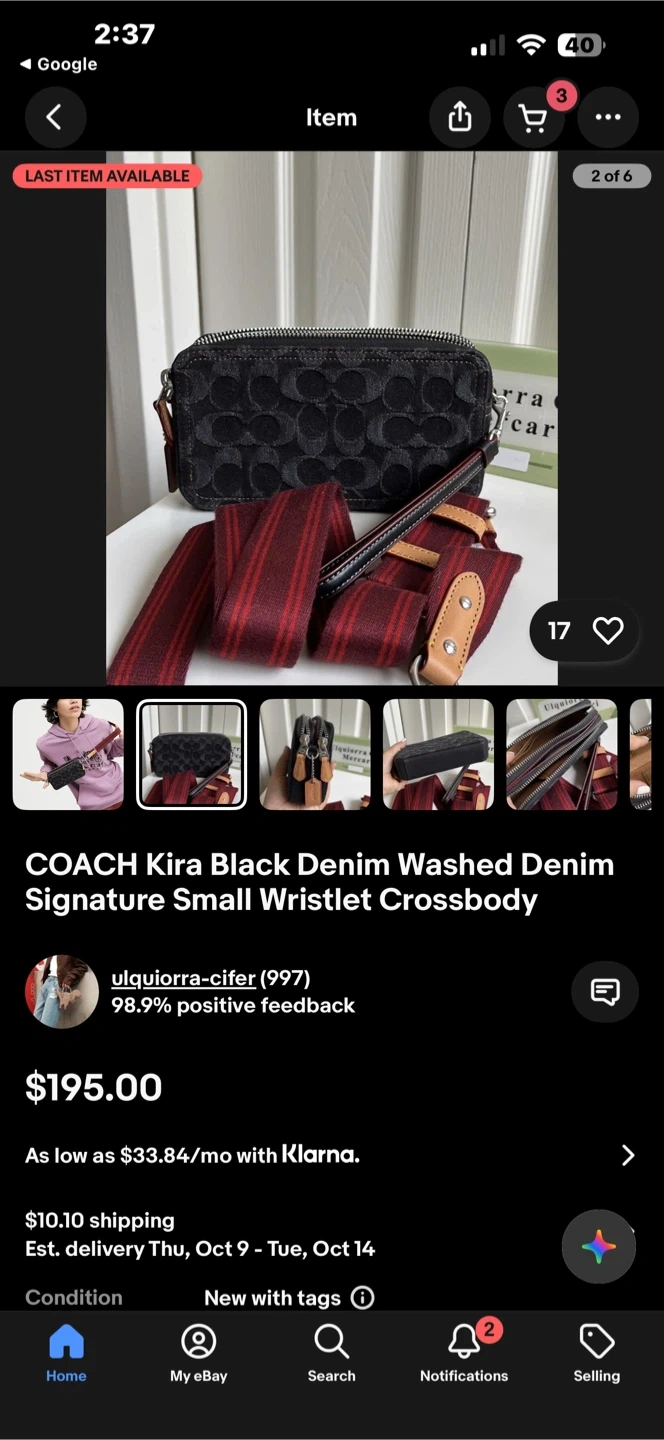 Selling a COACH Kira Black Denim Washed Denim Signature Small Wristlet Crossbody.