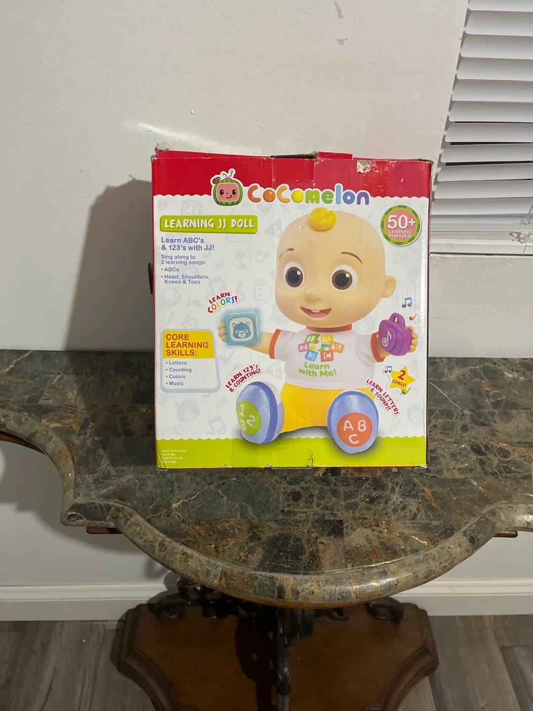 60I'm selling a CoComelon Learning JJ Doll! It helps your little one learn letters, numbers, colors, and music. It also sings along to fun songs! This doll teaches ABCs, shapes, numbers, shoulders, knees, and toes. It has 50+ learning sounds and phrases. The box is included!