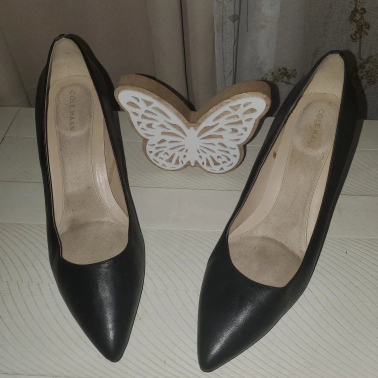 10Selling a pair of Cole Haan black leather heels in size 8. They are in good condition and ready for a new home! Perfect for dressing up any outfit. The material is leather and the color is black