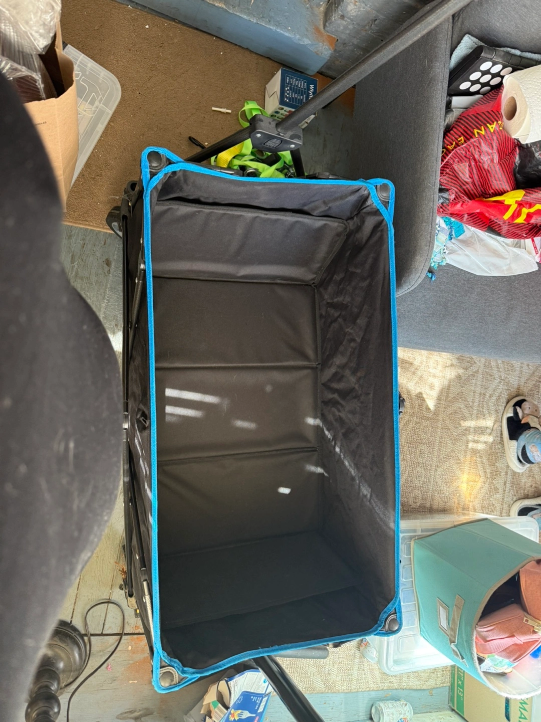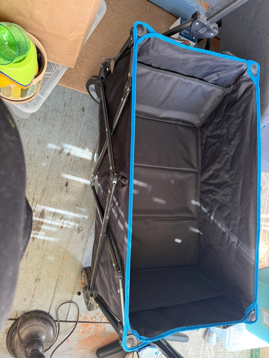 This is a collapsible folding outdoor utility wagon cart. It's perfect for hauling groceries, camping gear, or anything else you need to move around easily. It's in good condition and ready for its next adventure