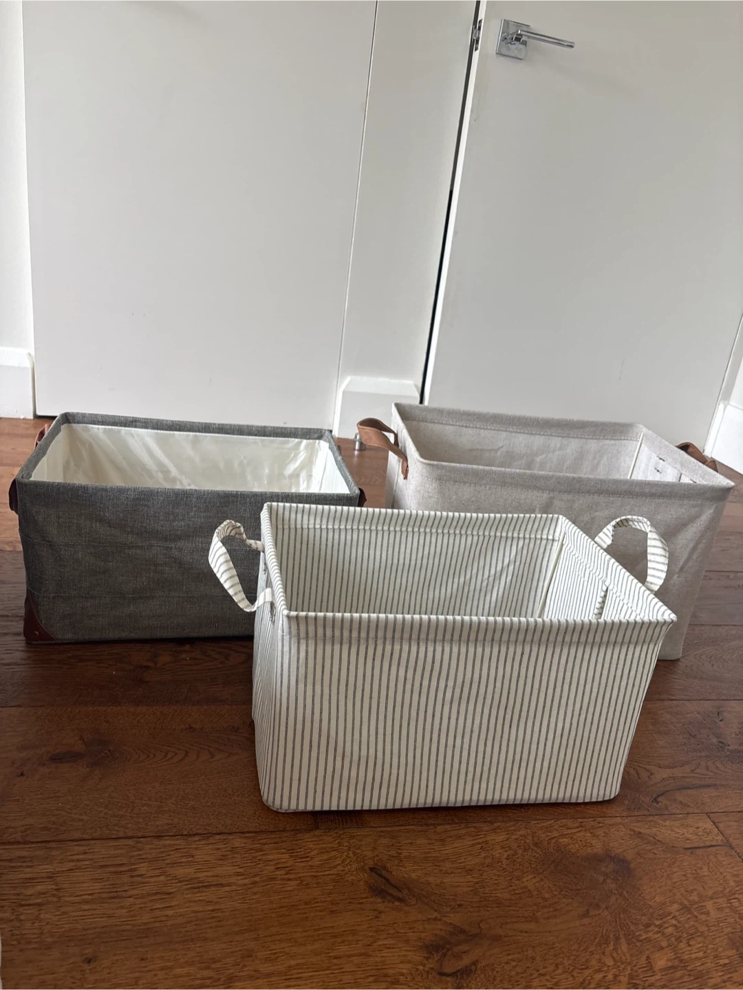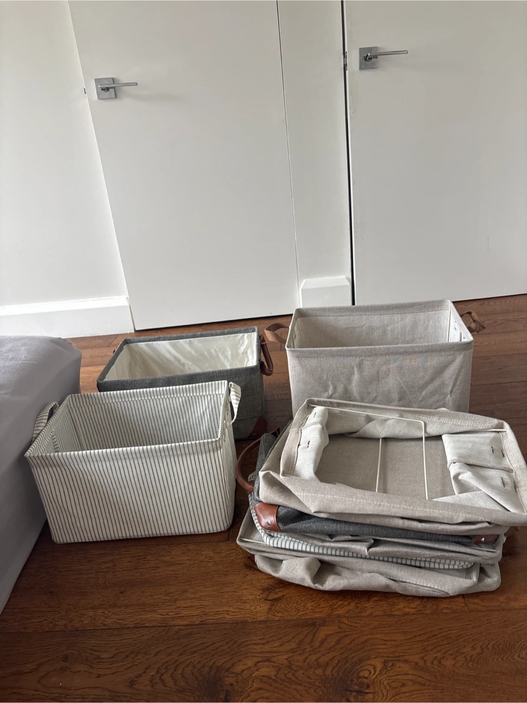 Selling a set of eight storage baskets in various neutral colors and patterns. They're perfect for organizing any room in your home. Great for storing toys, clothes, or household items. Get organized today! Pick up at 122nd street and Morningside Avenue