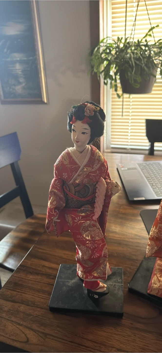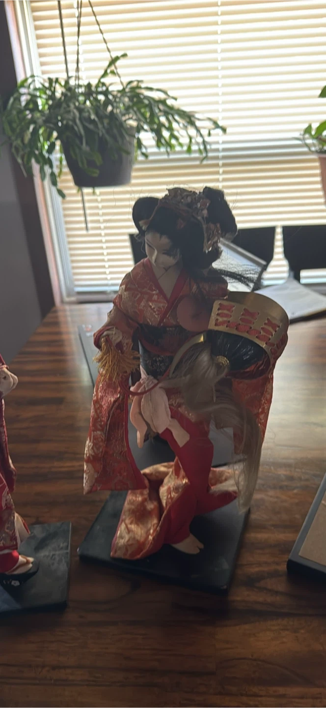 I'm selling a few collectible dolls. They have been displayed and are in good condition. Perfect for collectors or as decorative pieces!