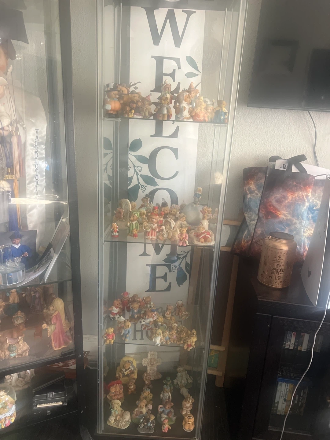 26I'm selling a collection of figurines displayed on a shelf. They are in good condition and would make a great addition to any collection. If you're interested, please message me!