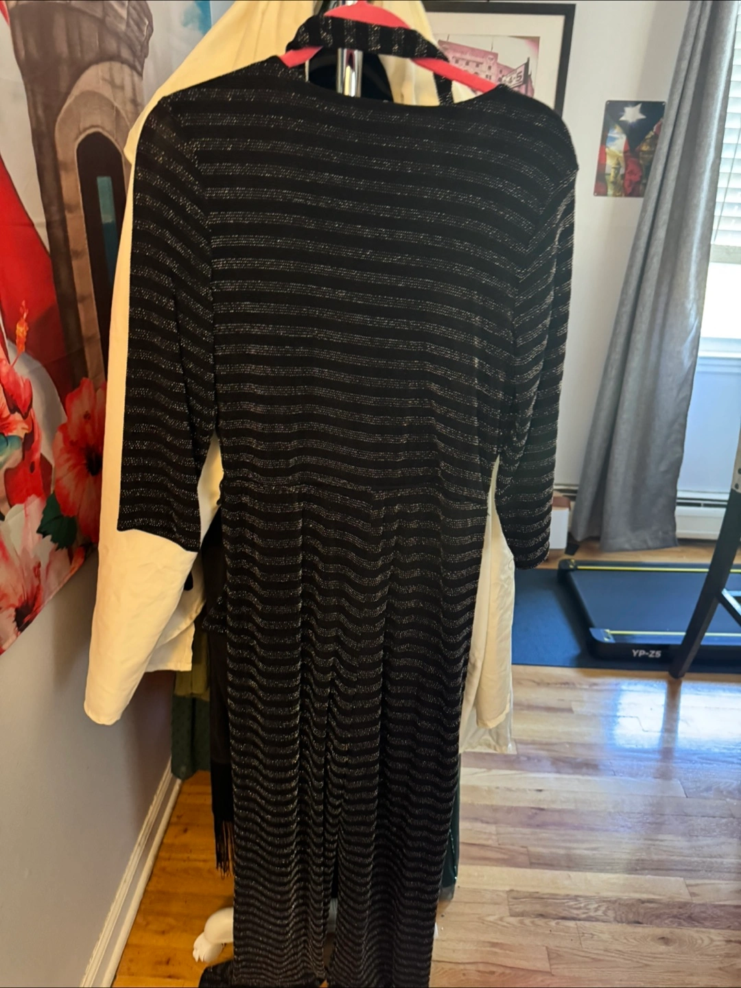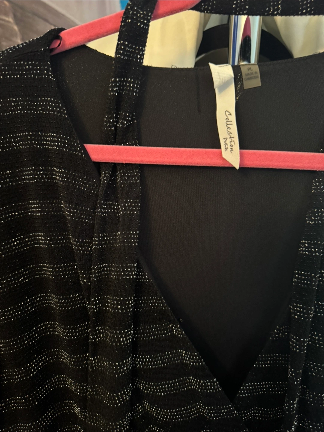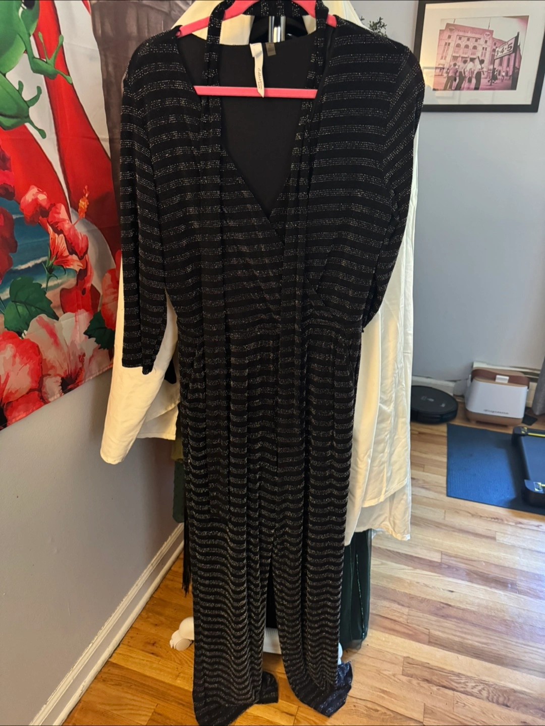 Selling a Collection by Dena petite black jumpsuit. It's a size PL and has a sparkly striped pattern. Perfect for a night out!