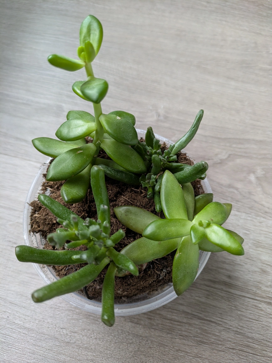 I have a collection of 4 succulents for sale. They are in a plastic container so it would probably be best to repot. Selling because of relocating.