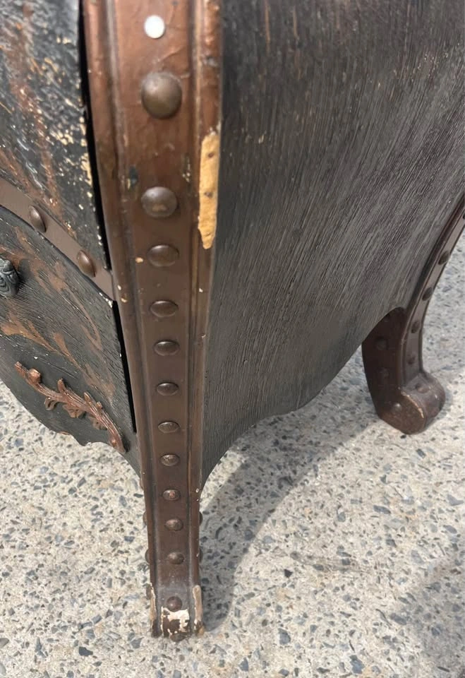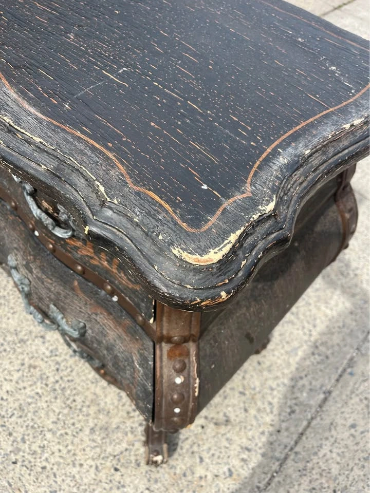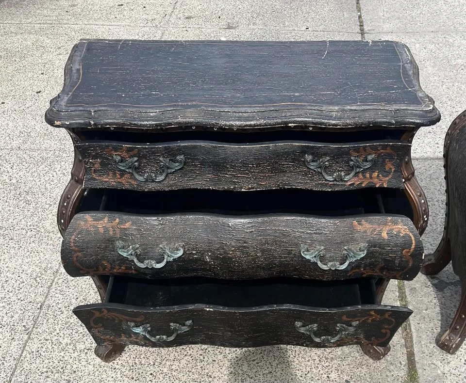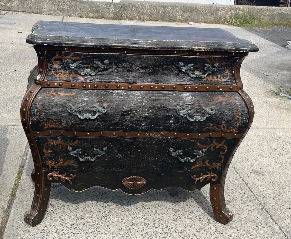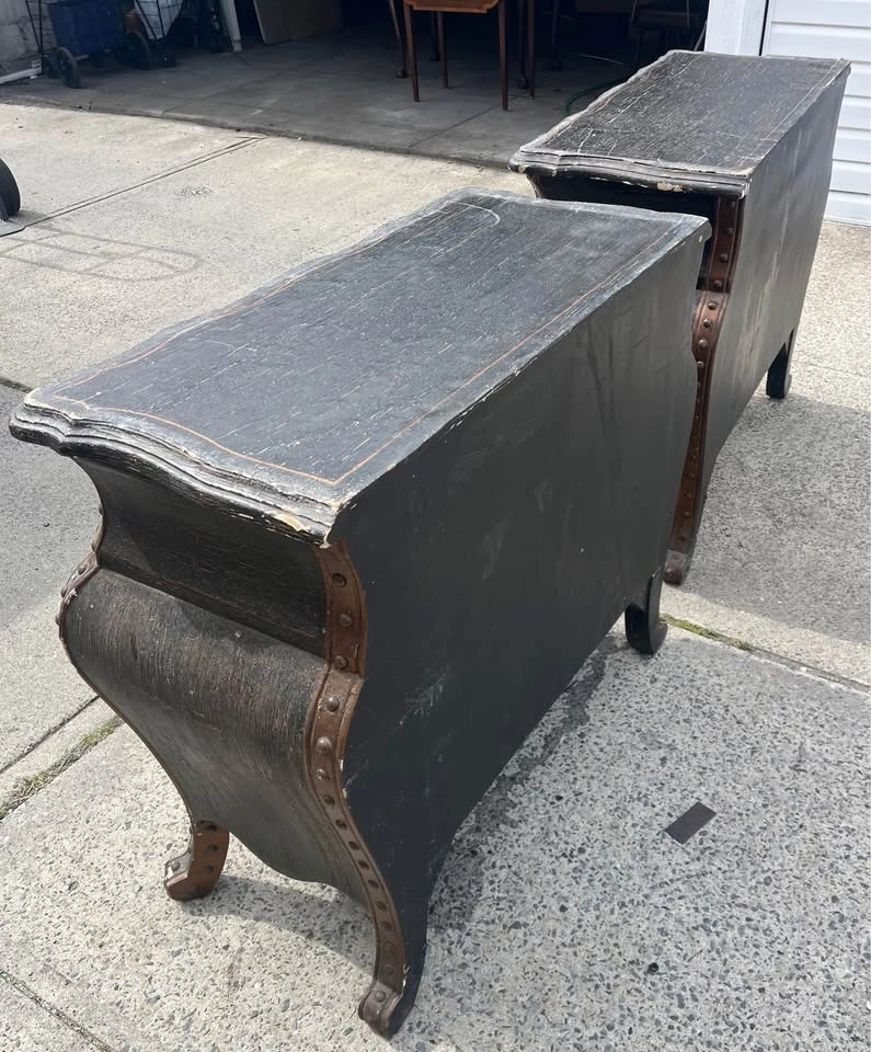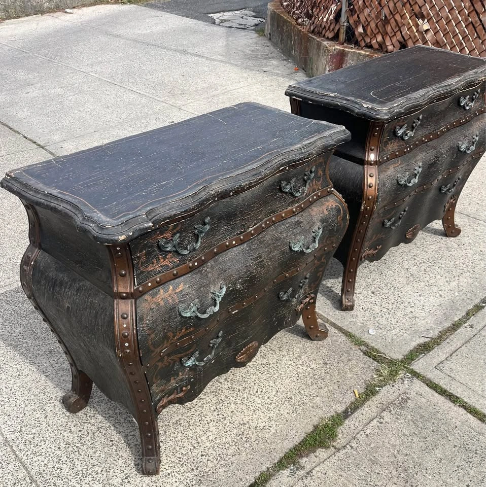 This is a pair of Collezioni Europa reproduction bombe chests in the Chinoiserie style. These chests are very sturdy and strong. They do have signs of minor paint chipping and blemish as seen in my photos and videos. Some appear to be on purpose and some not. They add to the appearance of being old (antique). They could be left as is or you could add I little bit of stain to cover them up. They have some light dust around them but I left them as is. I don’t like to mess with furniture and let the buyer leave it or change its appearance to their liking. Each chest is approximately L38xW18 xH34 inches. Each chest is $100 but I’ll take $160 if you purchase both. Cash only Pickup in Sheepshead Bay Brooklyn.