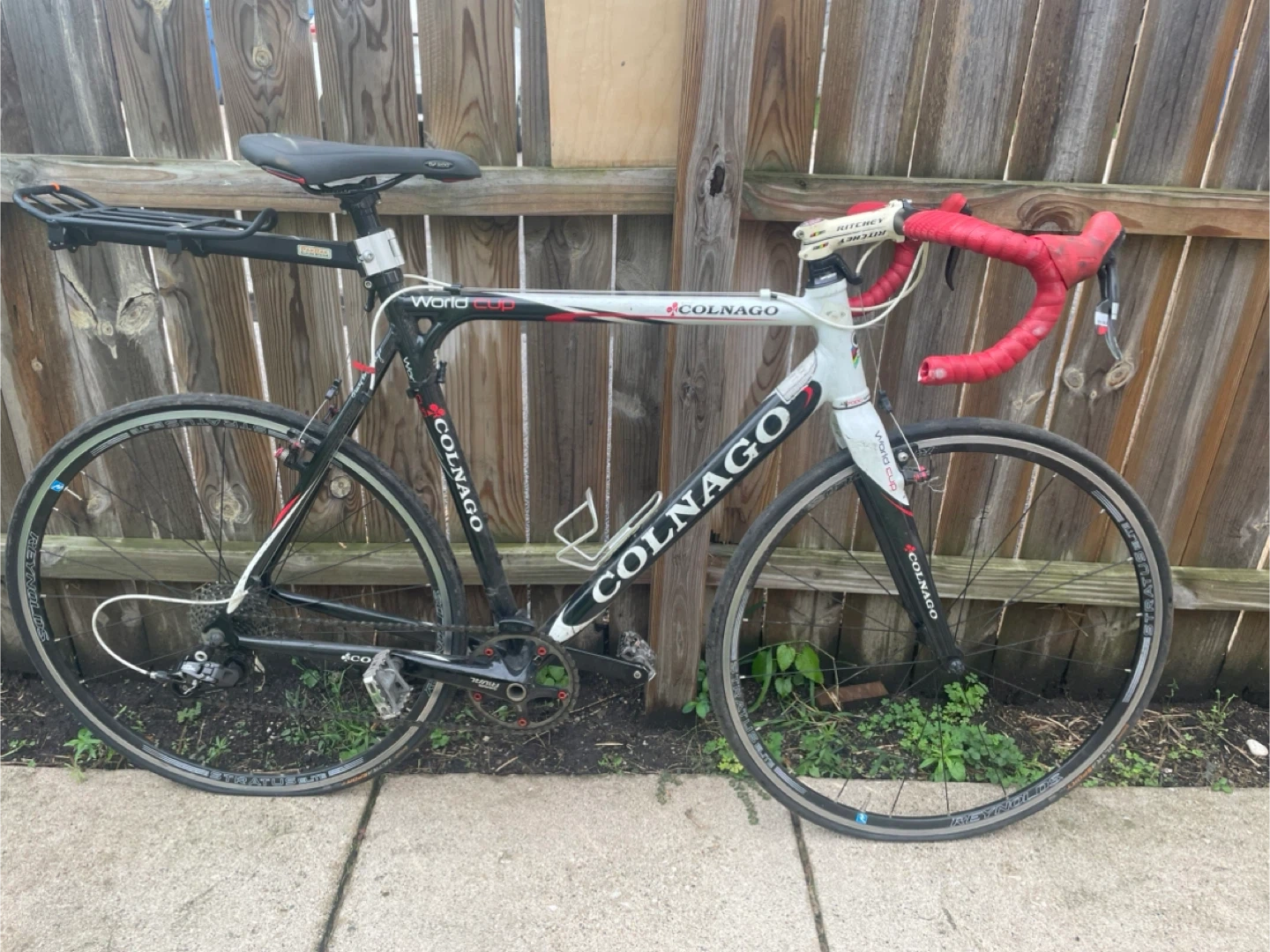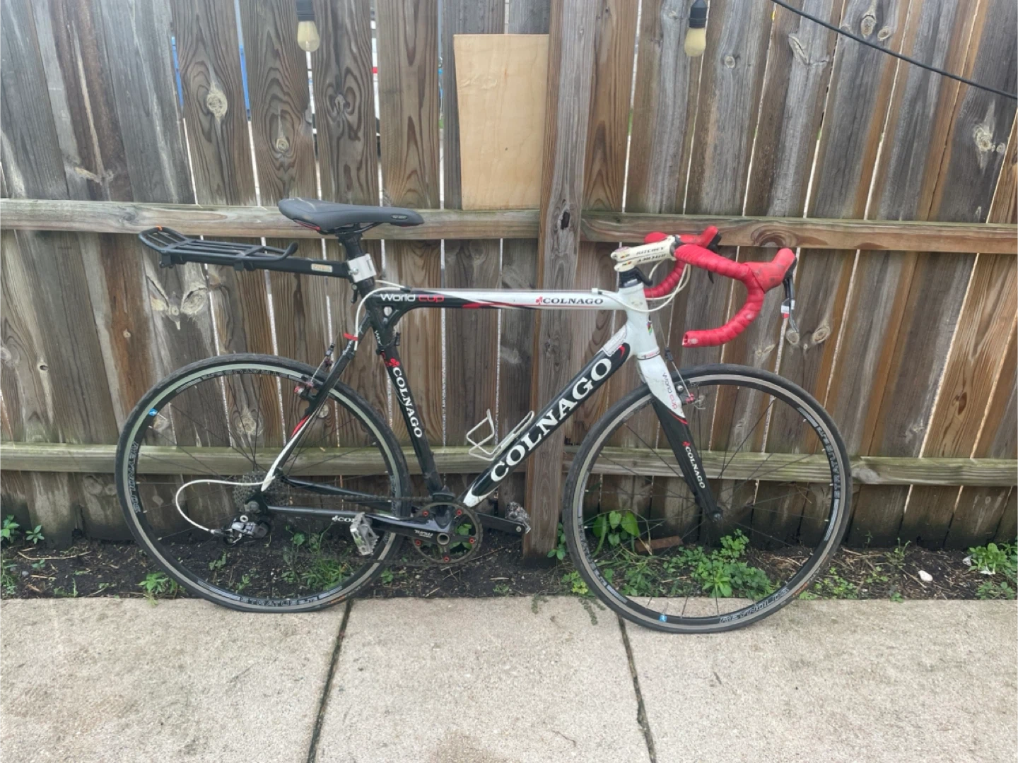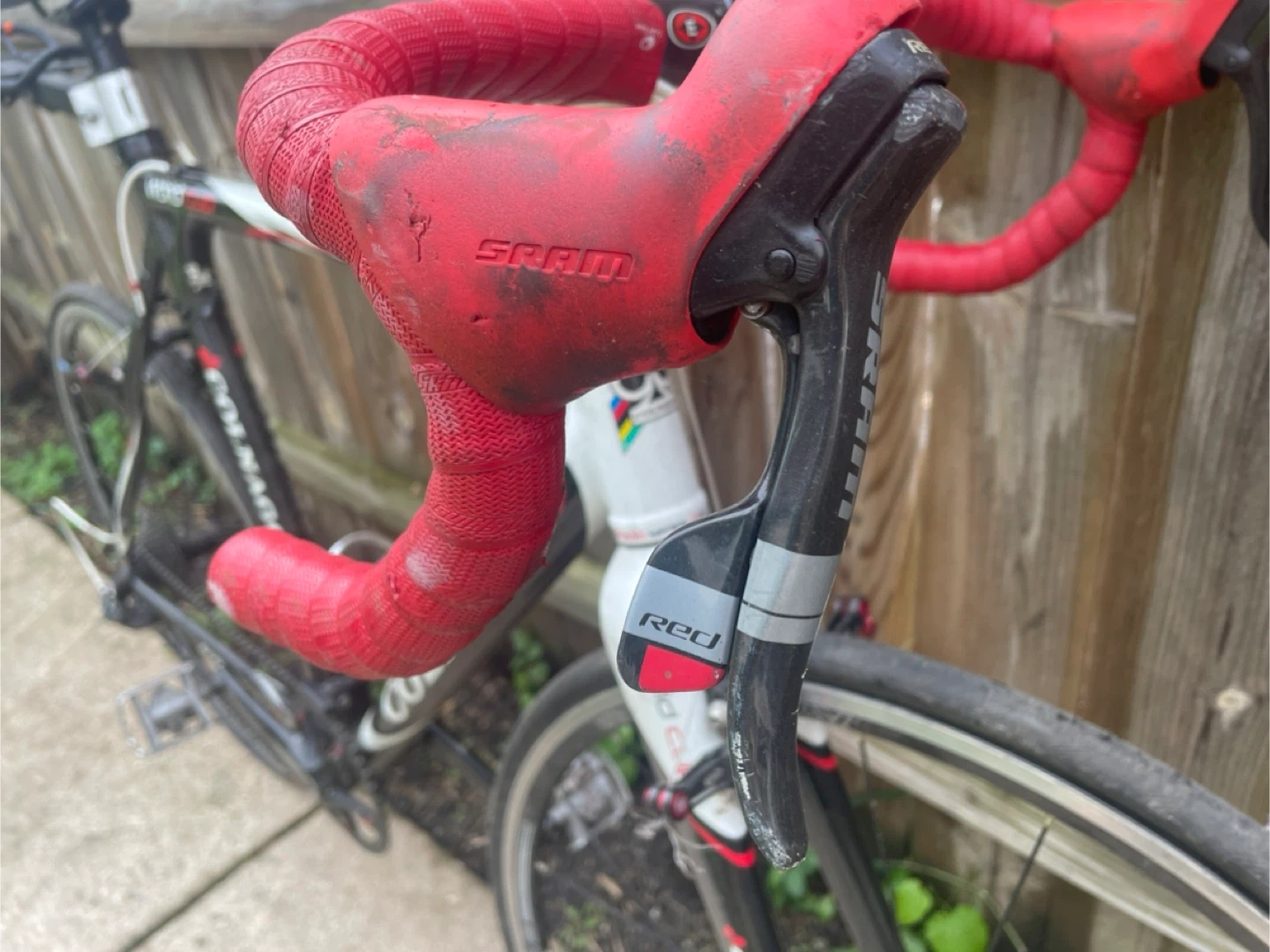 Selling a Colnago World Cup road bike. It features SRAM components and red handlebar tape. It's ready for a new owner to enjoy!