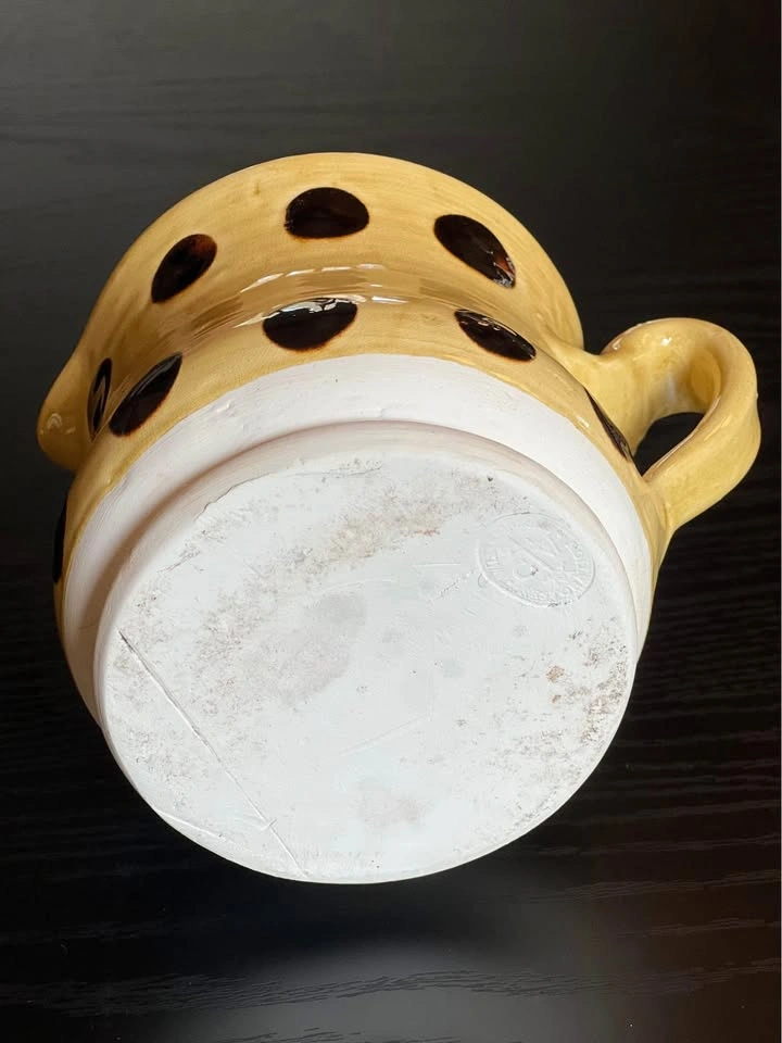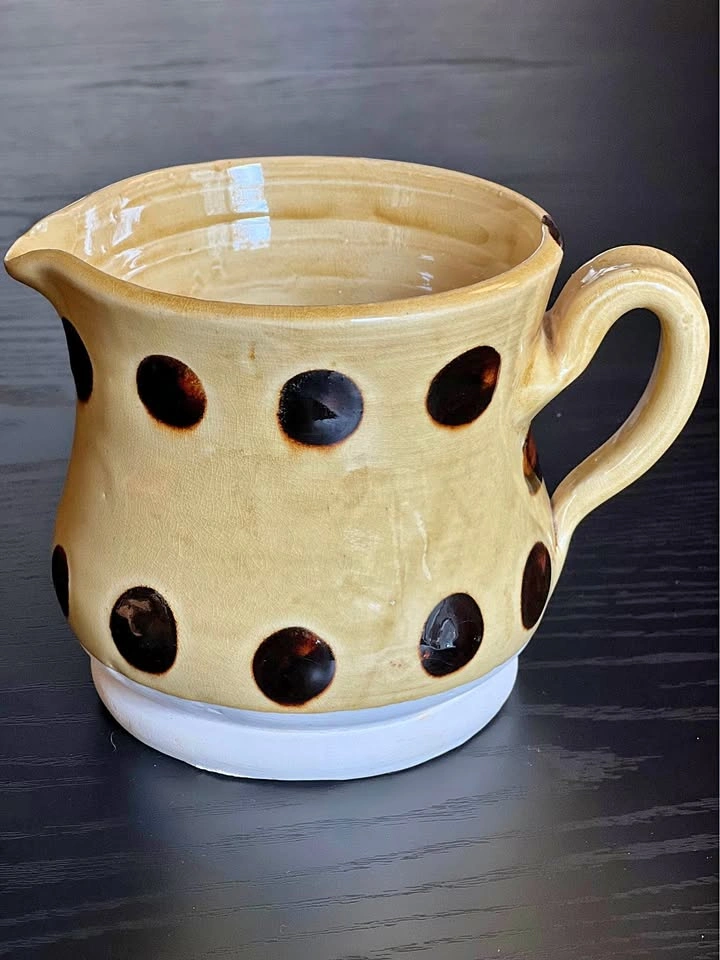 This beautiful Colonial Williamsburg Restoration Pottery Jug Pitcher is a must-have for any collector or lover of historic pottery. The polka dot pattern and creamware color make it a charming addition to any kitchen or dining room. Measuring 4.5” tall, 4.5” diameter, with a 4” base, this pitcher is the perfect size for serving your favorite beverages. Crafted from high-quality clay using traditional pottery techniques, this pitcher is not only stylish but also durable. It weighs 2lbs 2oz and belongs to the Colony product line. Whether you're a fan of decorative cookware or simply appreciate the beauty of vintage pottery, this Colonial Williamsburg Restoration Pottery Jug Pitcher is sure to impress.