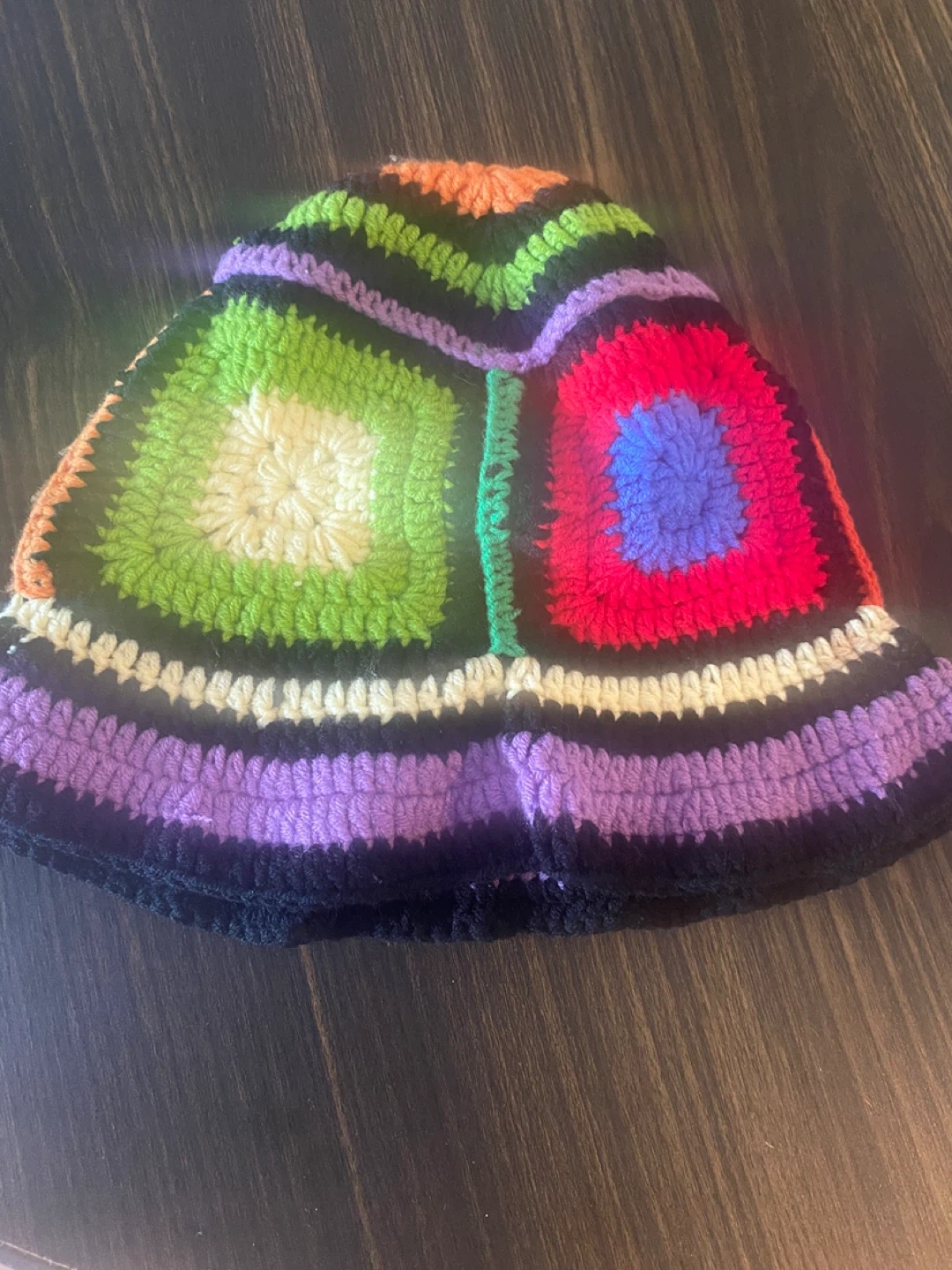 170Selling these fun, handmade crochet bucket hats! They're super colorful and perfect for adding a unique touch to any outfit. The material is soft and comfy, great for everyday wear. These hats are sure to make a statement!