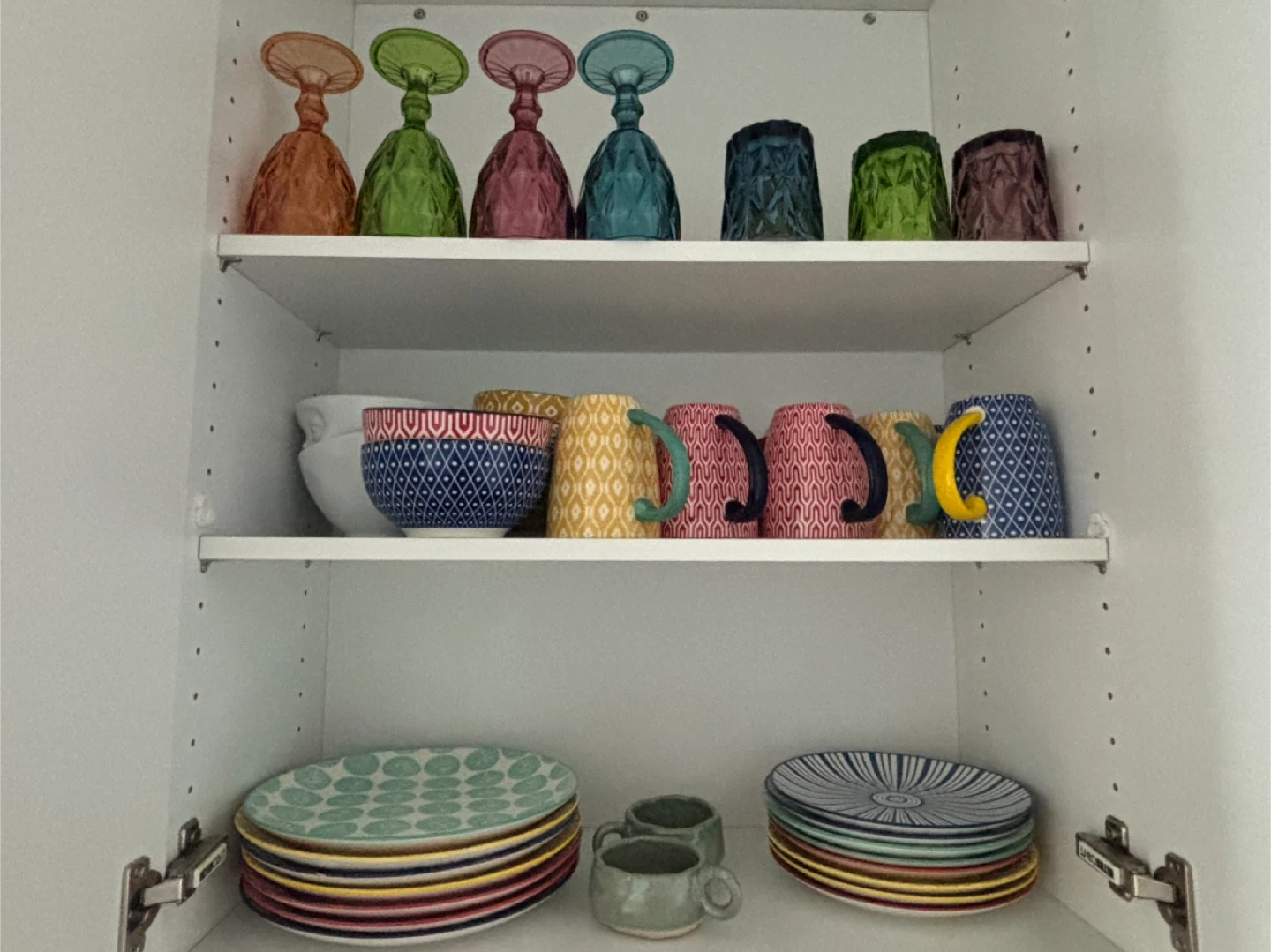 20I'm selling a collection of colorful drinking glasses, mugs, bowls, and plates. They are in great condition and ready for a new home! Perfect for adding a pop of color to your kitchen or dining room