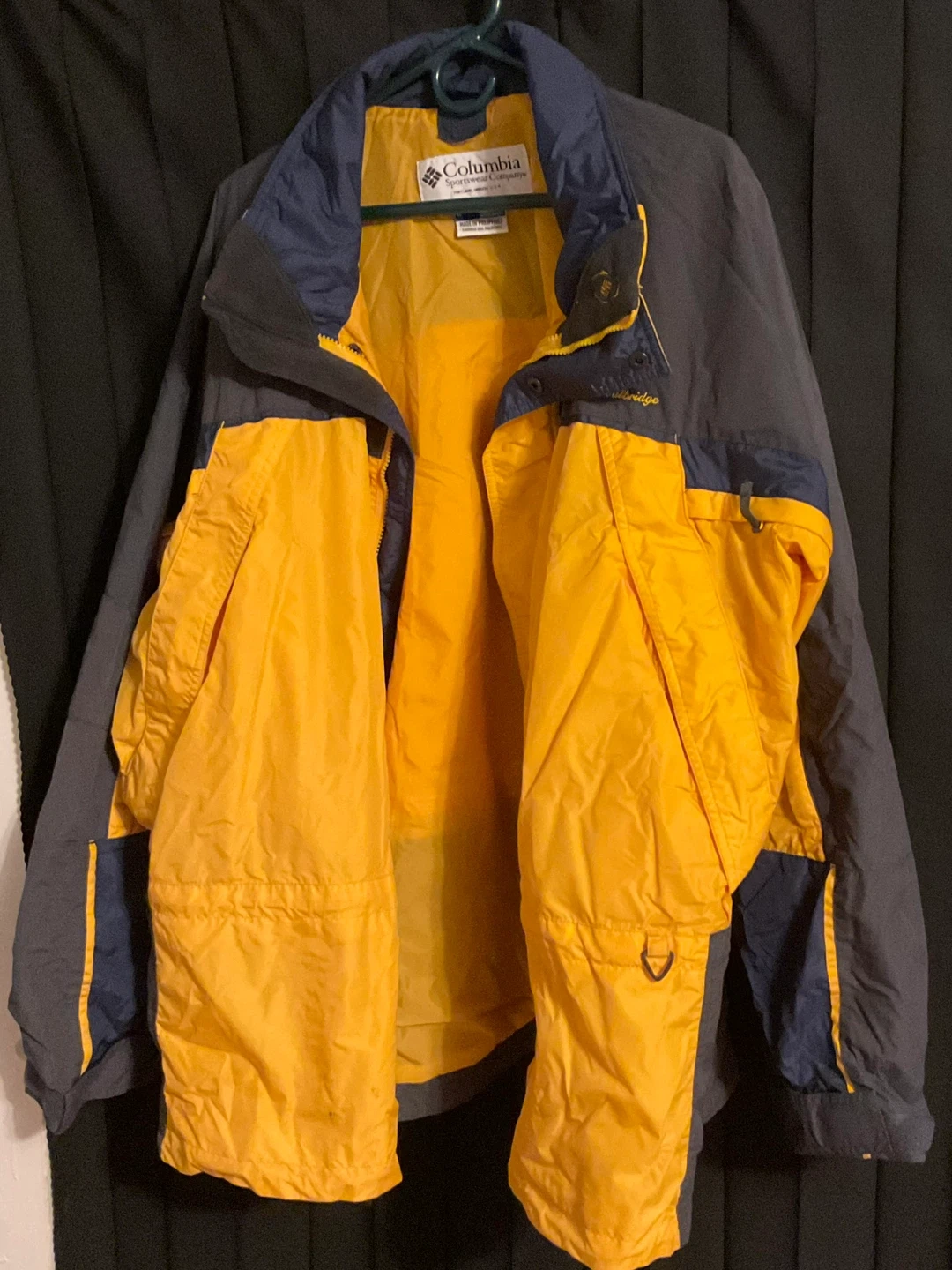 Selling a Columbia Belting Walbridge jacket. It's a stylish combination of yellow and gray, perfect for outdoor activities or everyday wear. It's in great condition does not have zip on hat and ready for a new home!
