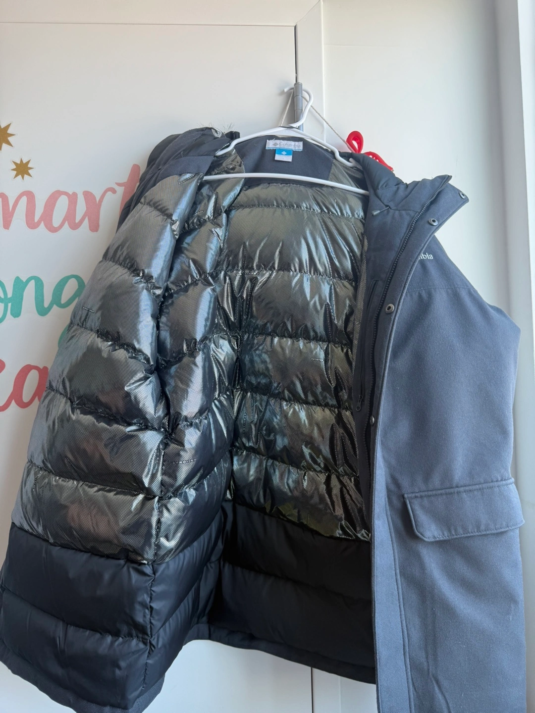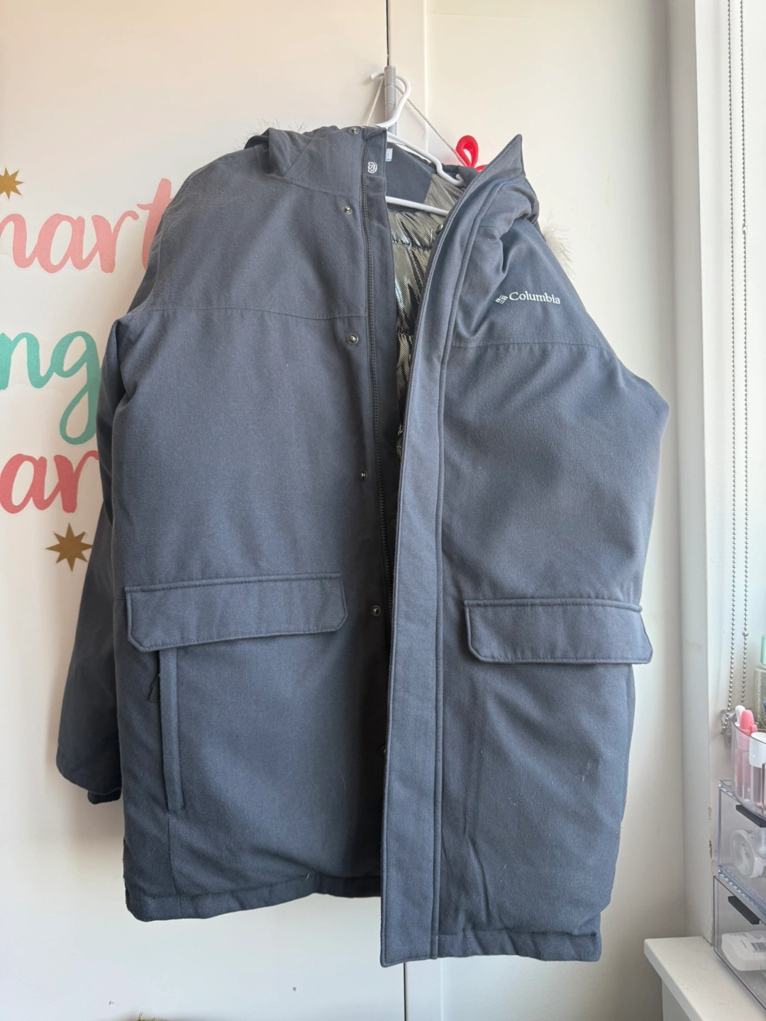 Selling a Columbia winter parka in gray, size large. It's in great condition and ready to keep you warm this winter! The jacket features Omni-Tech technology.