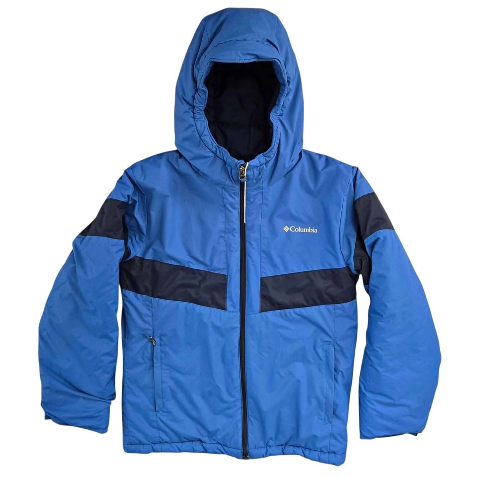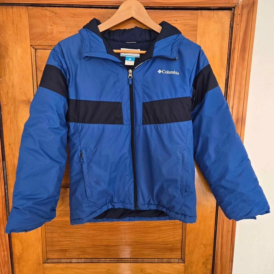 10Columbia Lightning Lift II hooded jacket, boys size large (14/16), blue. Material: 100% Nylon. Please see pictures for size/ measurements. Item is stored in a smoke-free and pet-free environment. Color in pics may vary due to lighting and/or monitor settings. Insulated with reflective detail. Let me know if you're interested!