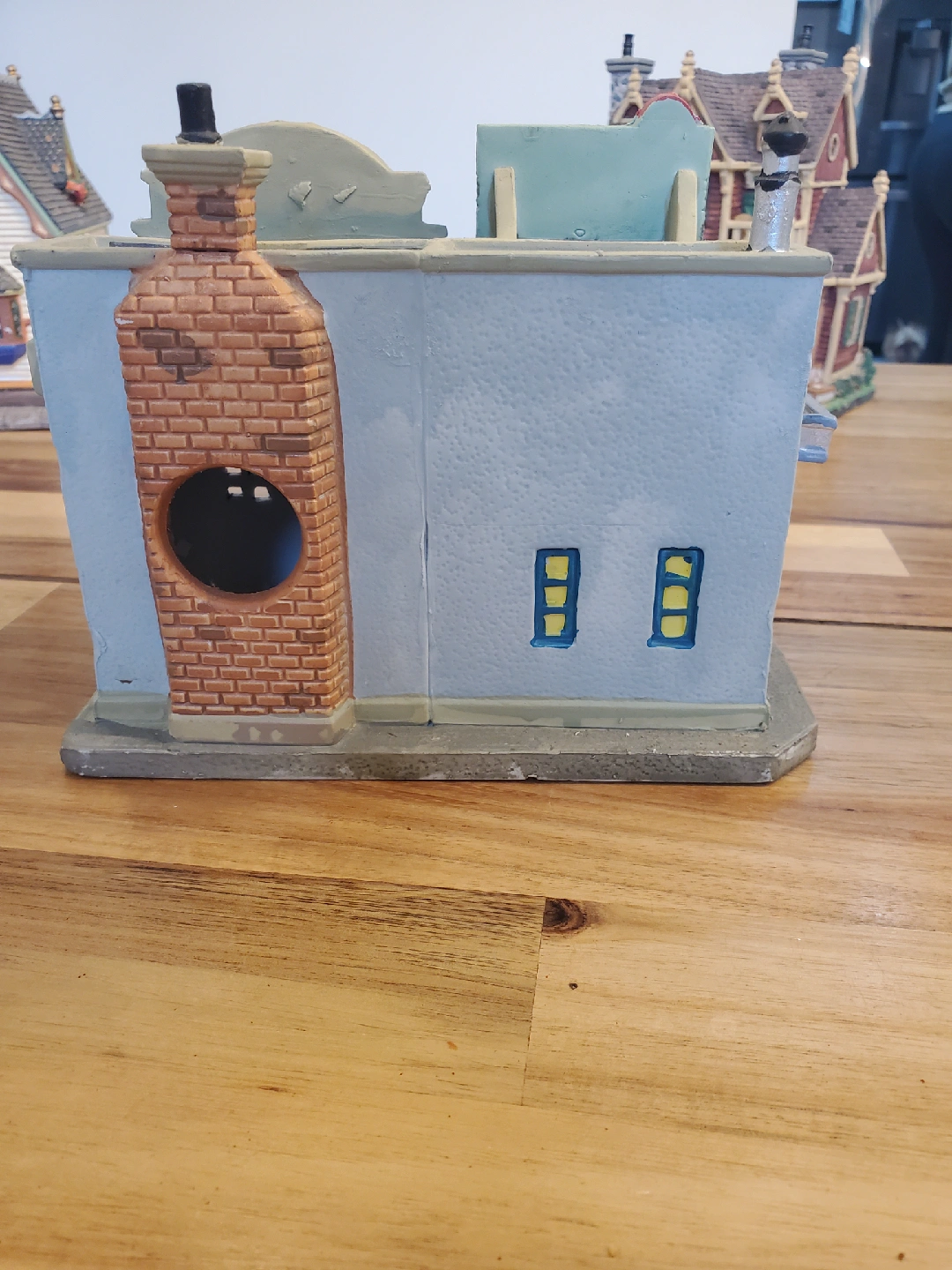 Here's a charming Comet Bike Shop village display piece! It features a detailed storefront with 'Comet Bike Shop' and 'American Bicycle Company' signs. There are even miniature bicycles parked outside