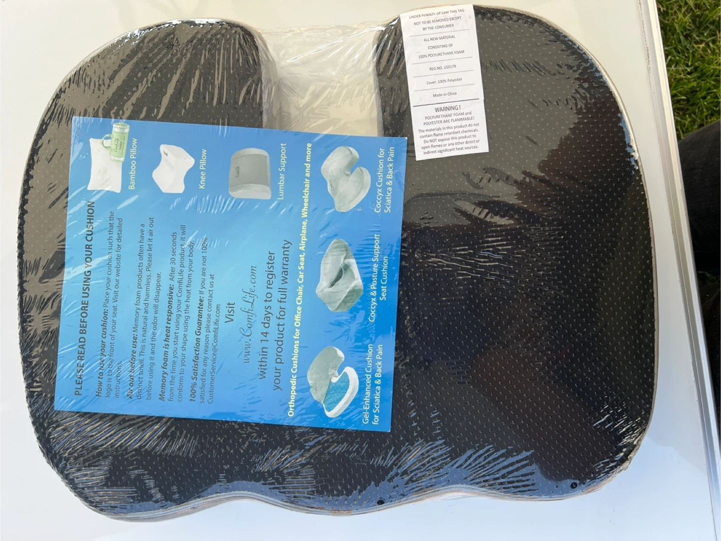 Selling a brand new ComfiLife Coccyx Seat Cushion! This cushion is designed for orthopedic support for office chairs, car seats, wheelchairs, and more. It helps relieve sciatica and back pain. It's made of dense foam and has a cover made of 100% polyester