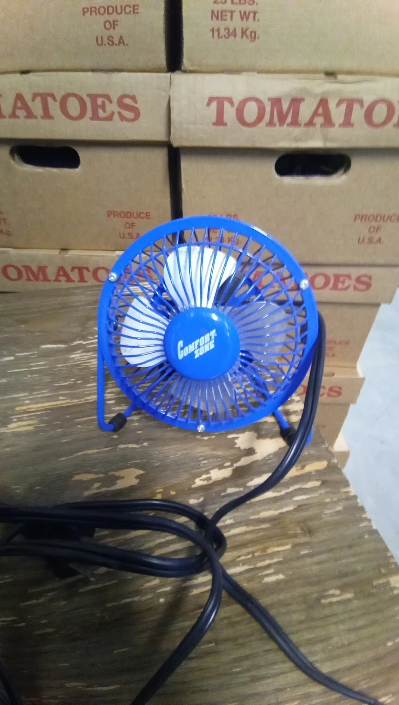 1000+Here's a Comfort Zone portable fan in blue! It's perfect for keeping cool on a desk or nightstand. It's lightweight and easy to move around, making it great for small spaces