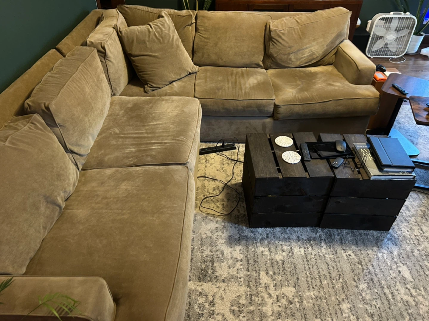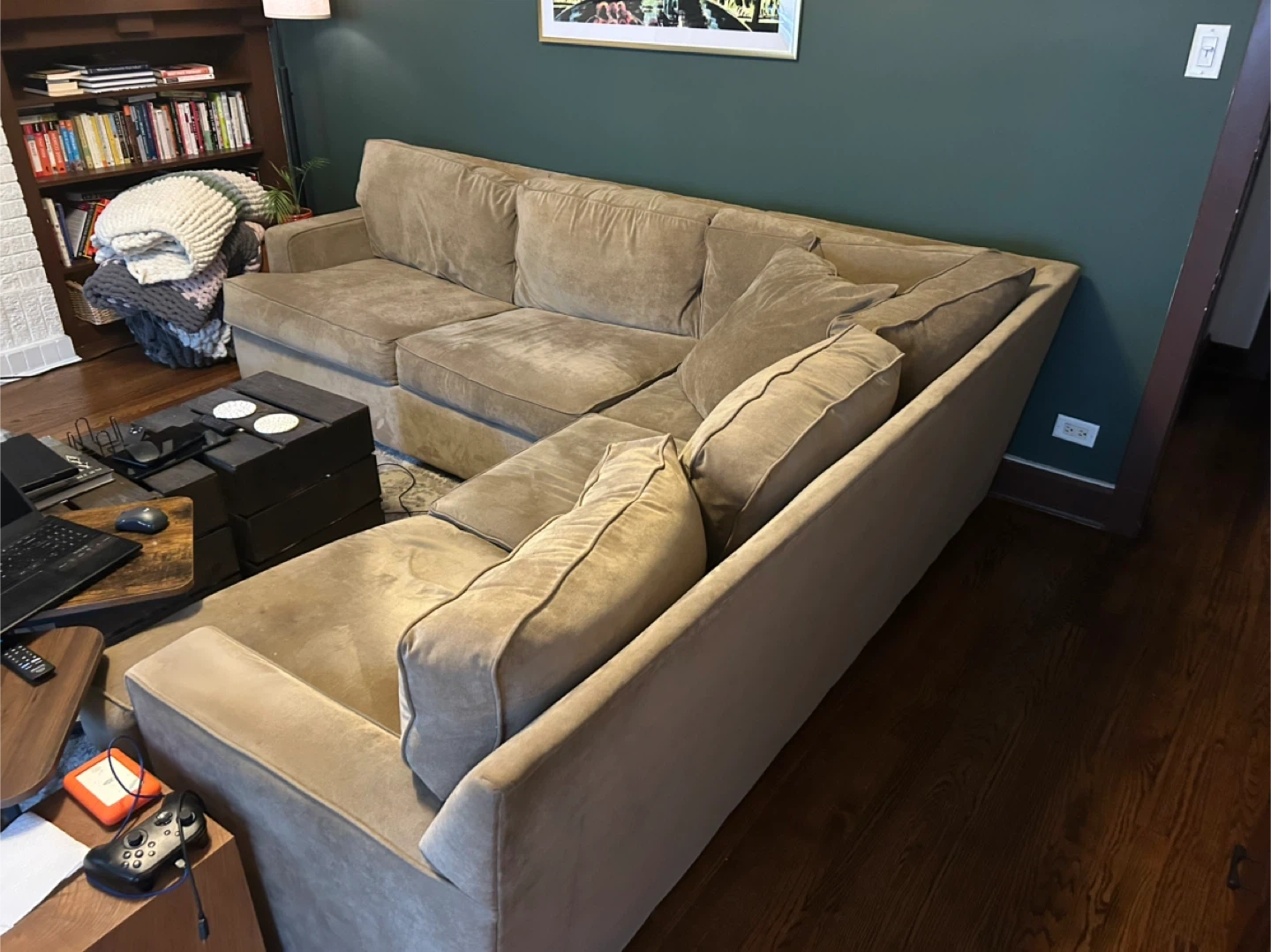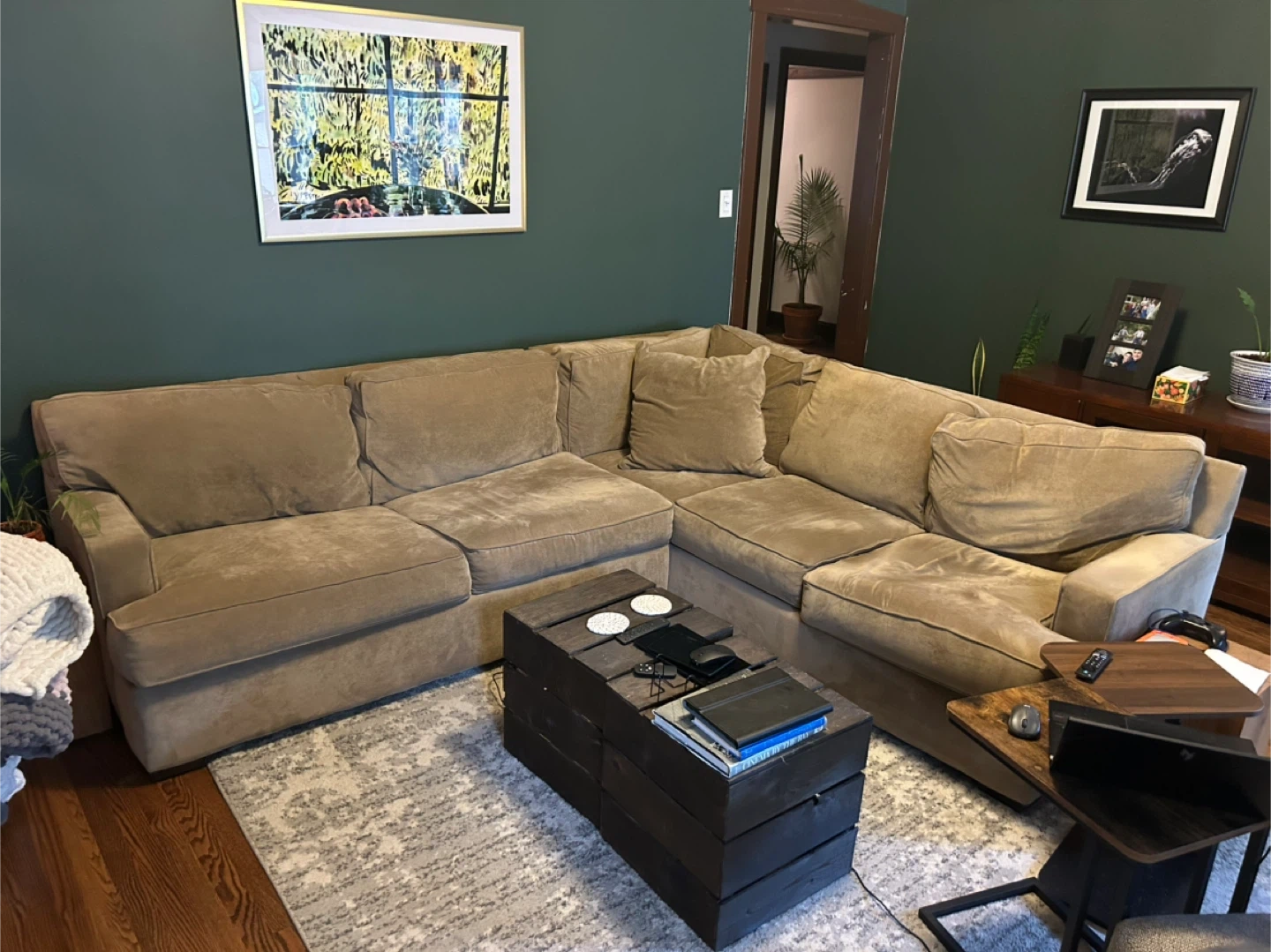 44Selling a comfortable sectional sofa! It's a great piece for any living room and offers plenty of seating space. The neutral beige color makes it easy to match with any decor. It's in good condition and ready for a new home. Was purchased from Roy’s Furniture in Lincoln Park.
