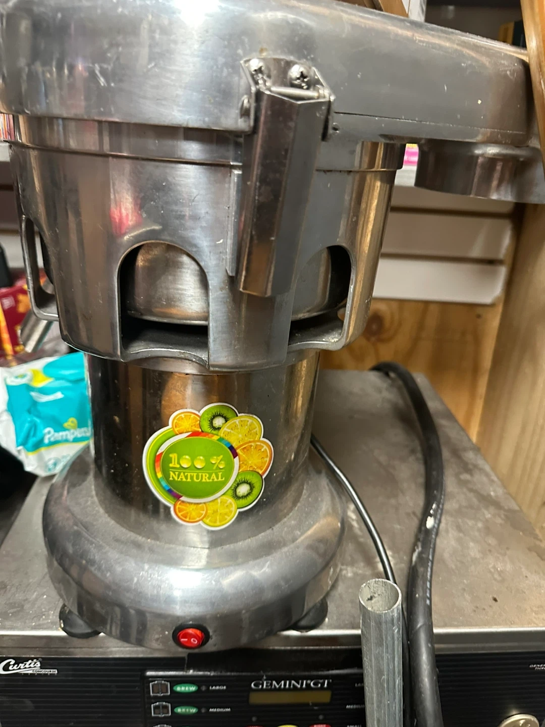 60Selling a commercial citrus juicer. It has a "100% Natural" sticker on it. Perfect for a small business or home use if you love fresh juice!