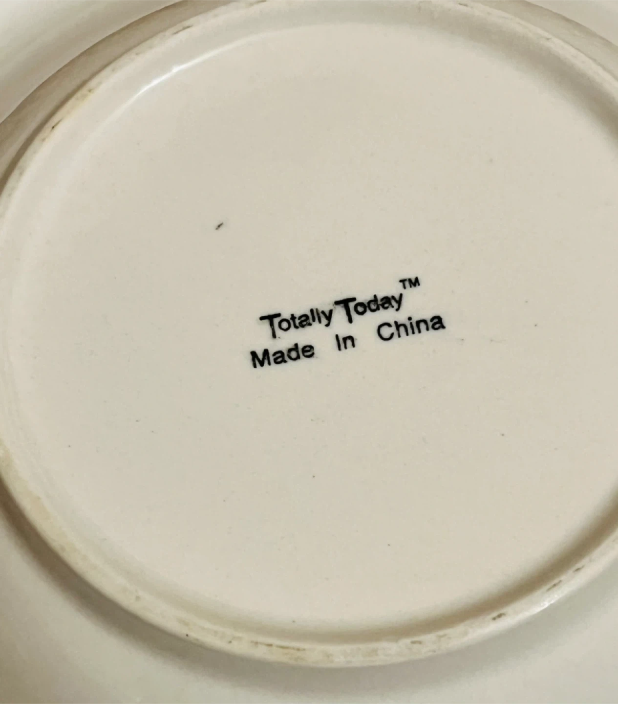 Very lightly used dishes. No chips. White with navy blue rims. 8 dinner plates, 8 salad plates, 8 bowls, & 8 coffee/tea cups.