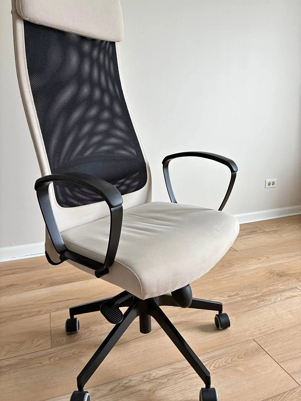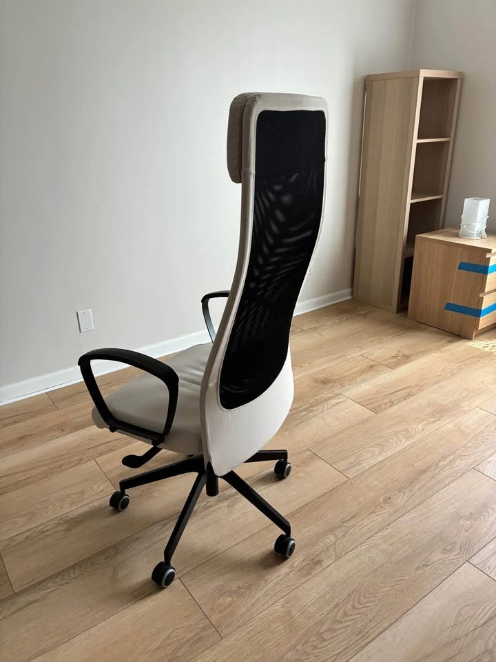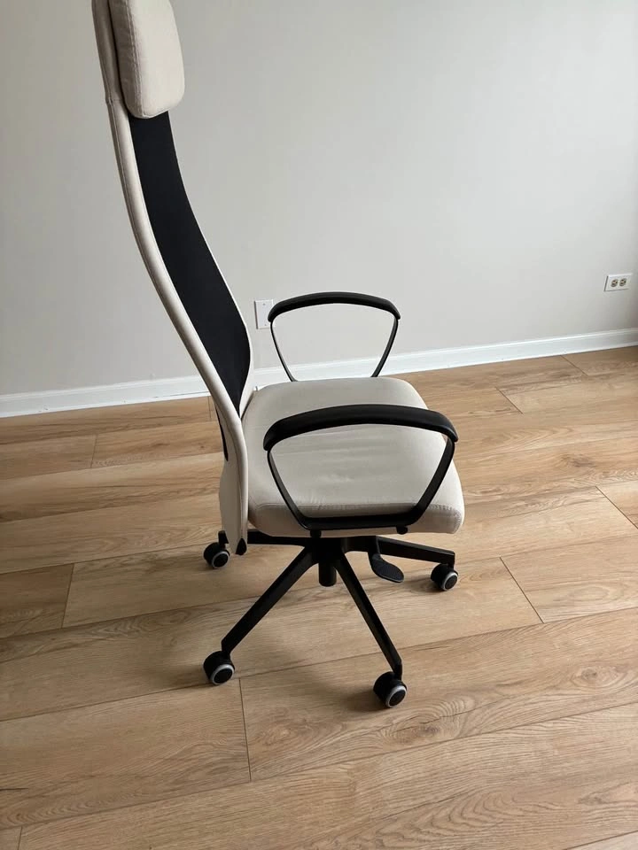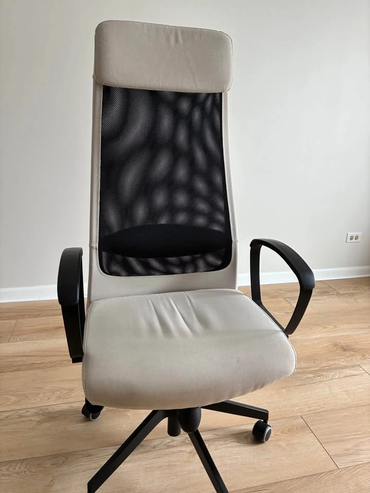 Big desk with metal frame.