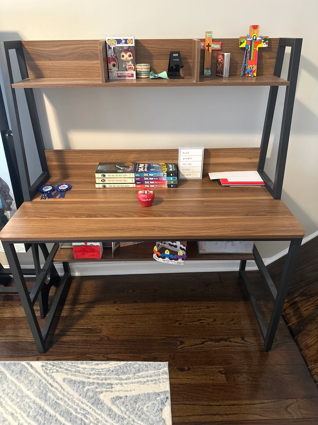 Black Metal & Grey Wood Clothes Rack with Mirror