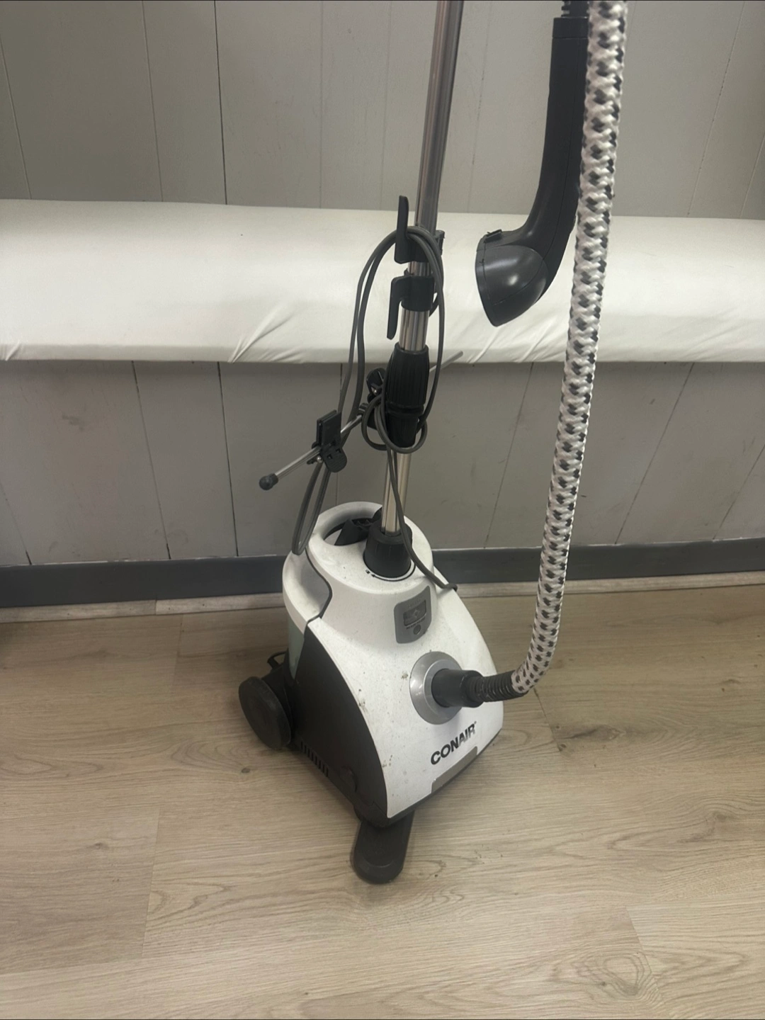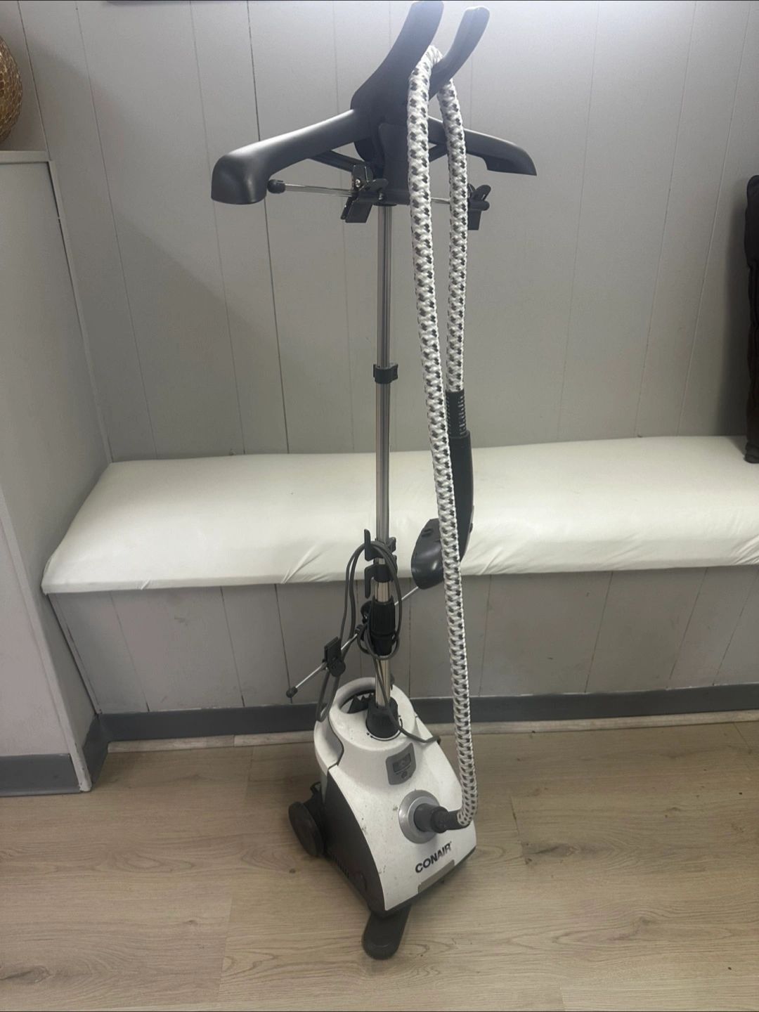 Selling a Conair garment steamer that's ready to help you keep your clothes looking their best! It's in good condition and stands at 41 inches tall. Perfect for quick touch-ups and getting rid of wrinkles!