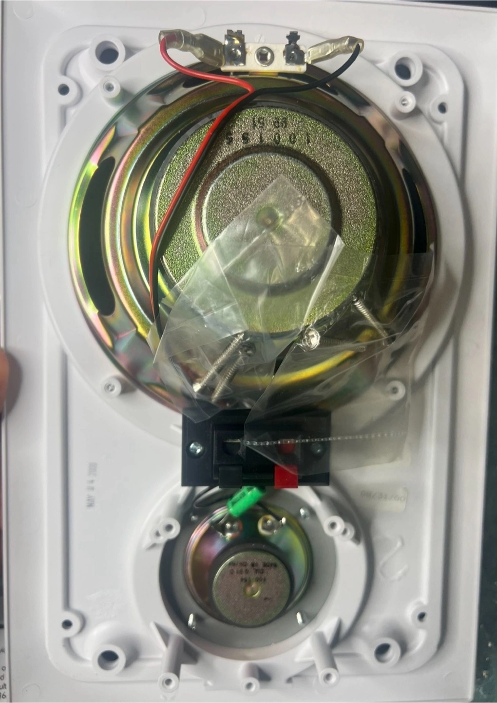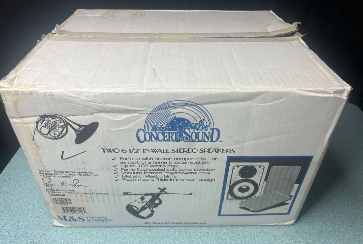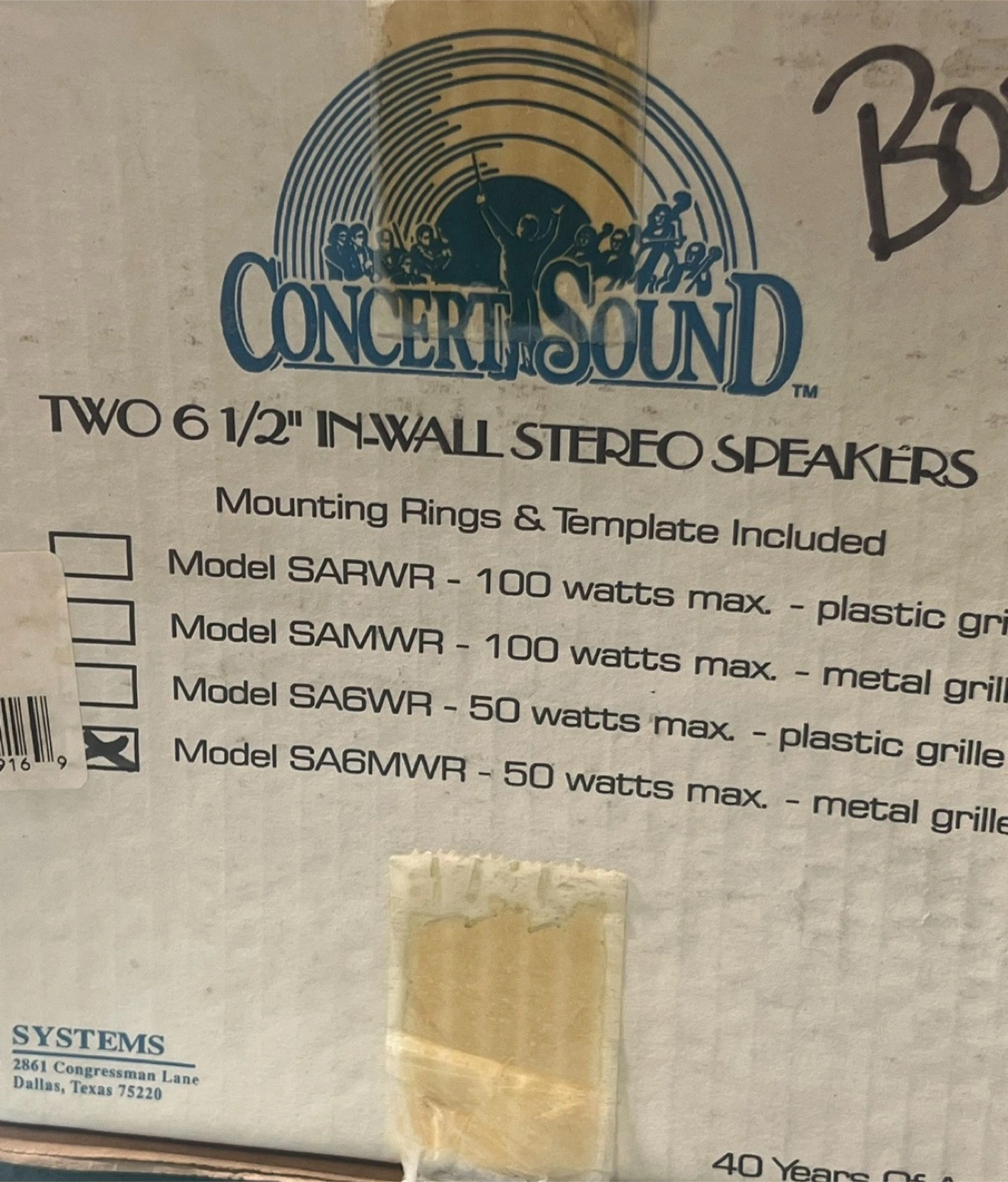 73Pair of in-wall speakers. New old stock. Includes mounting rings and hardware. Up to 100 watts max. Ferro fluid-cooled soft dome tweeter. Metal or plastic grille.