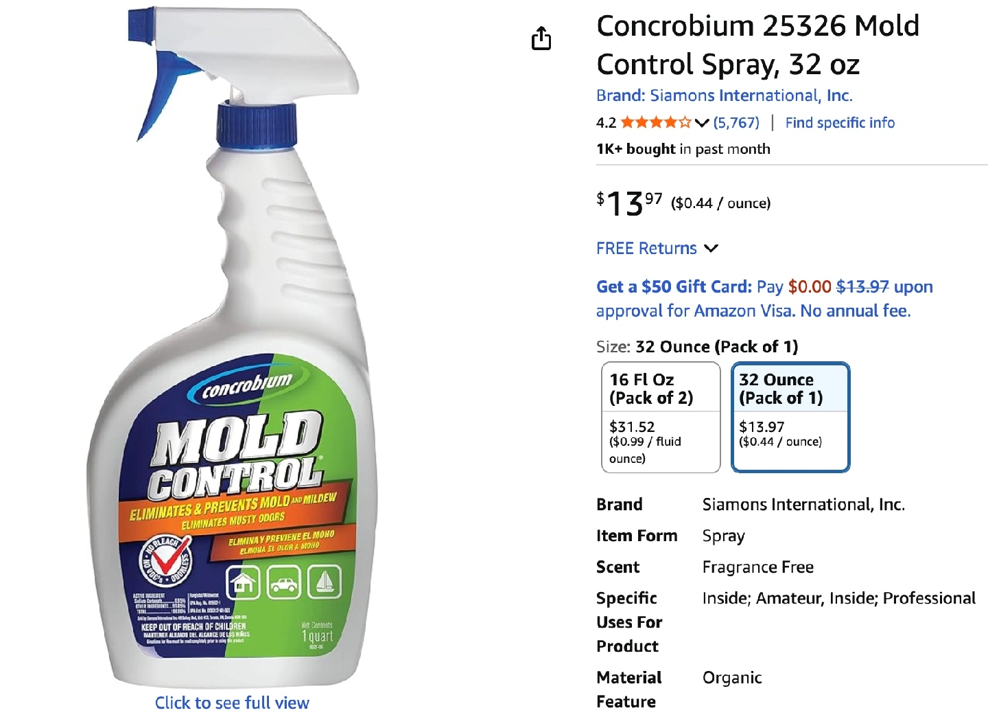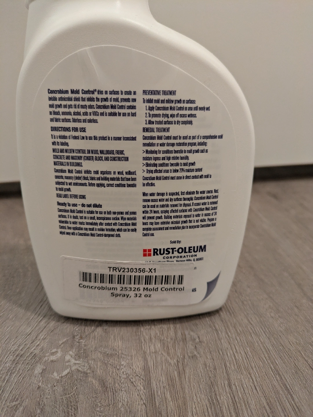 I'm selling an almost full 32 oz bottle of Concrobium Mold Control spray. Can be used on wood, wallboard, fabric, concrete, masonry (cinder) block and more. Odourless and colorless. Original price $14. Selling because we are relocating. We're going to need to get rid of a lot of stuff in the next few weeks so please check out my other listings 😊 More coming soon!
