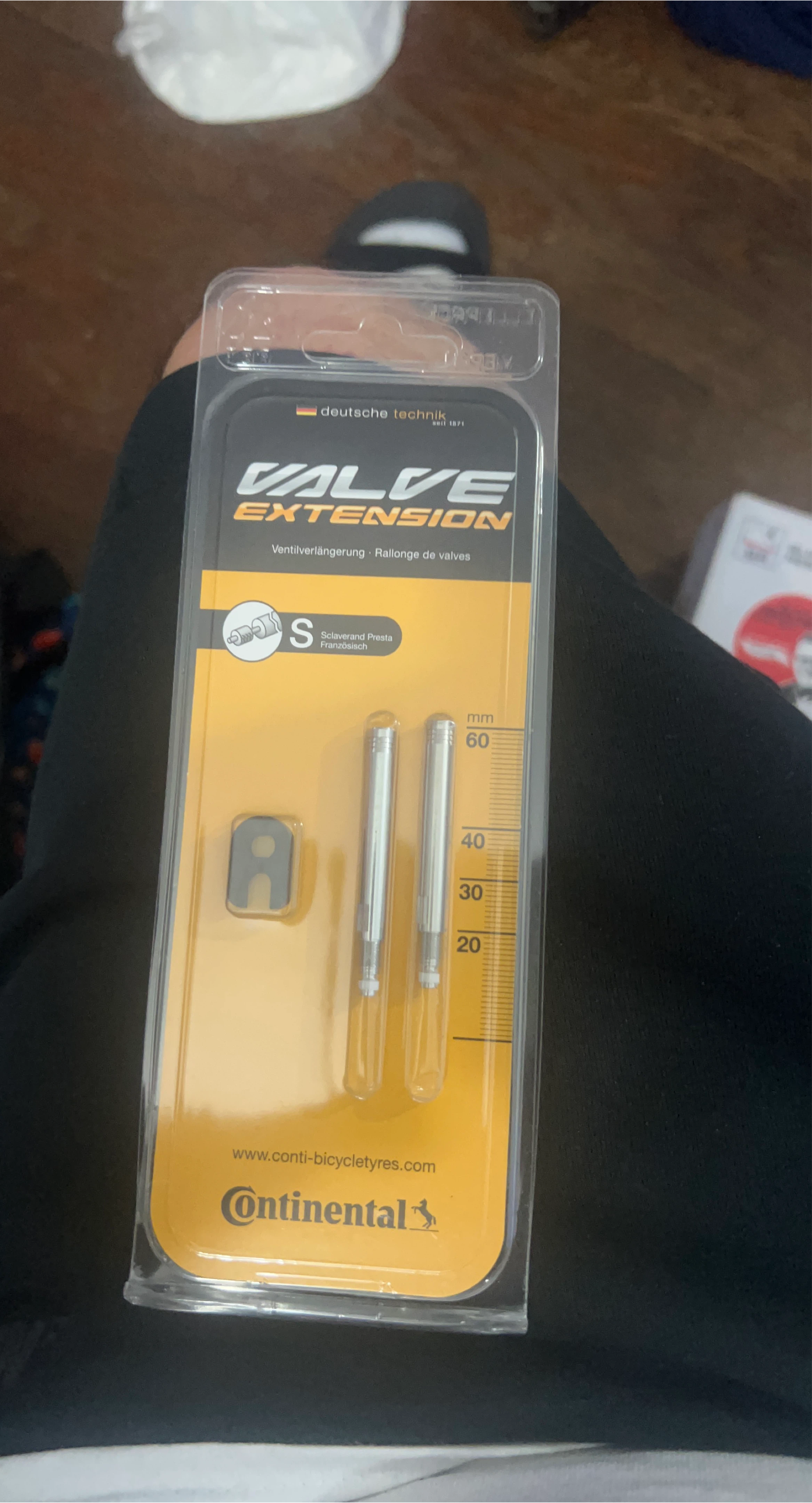 Selling a brand new Continental Valve Extension. It's size S and for Sclaverand Presta valves.