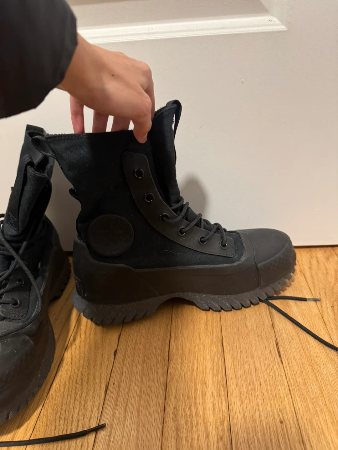 23Selling a pair of Converse A-Cold-Wall* Chuck Taylor All Star Lugged Boots. These boots are a stylish and durable choice for any wardrobe! They feature a lugged sole for added traction and a unique design collaboration with A-Cold-Wall*.