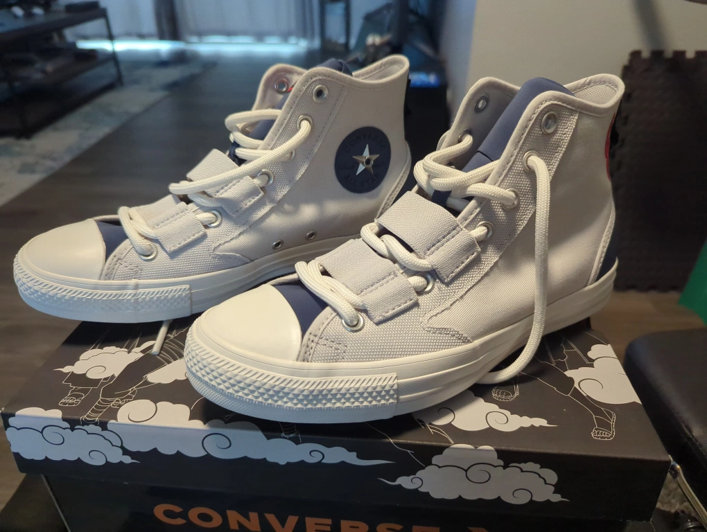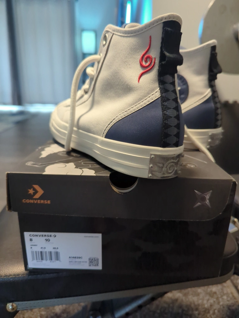 65Selling a pair of Converse x Naruto Chuck Taylor All Star High Tops in size 8! These are in great condition and come with the original box. They feature a unique design inspired by the Naruto series