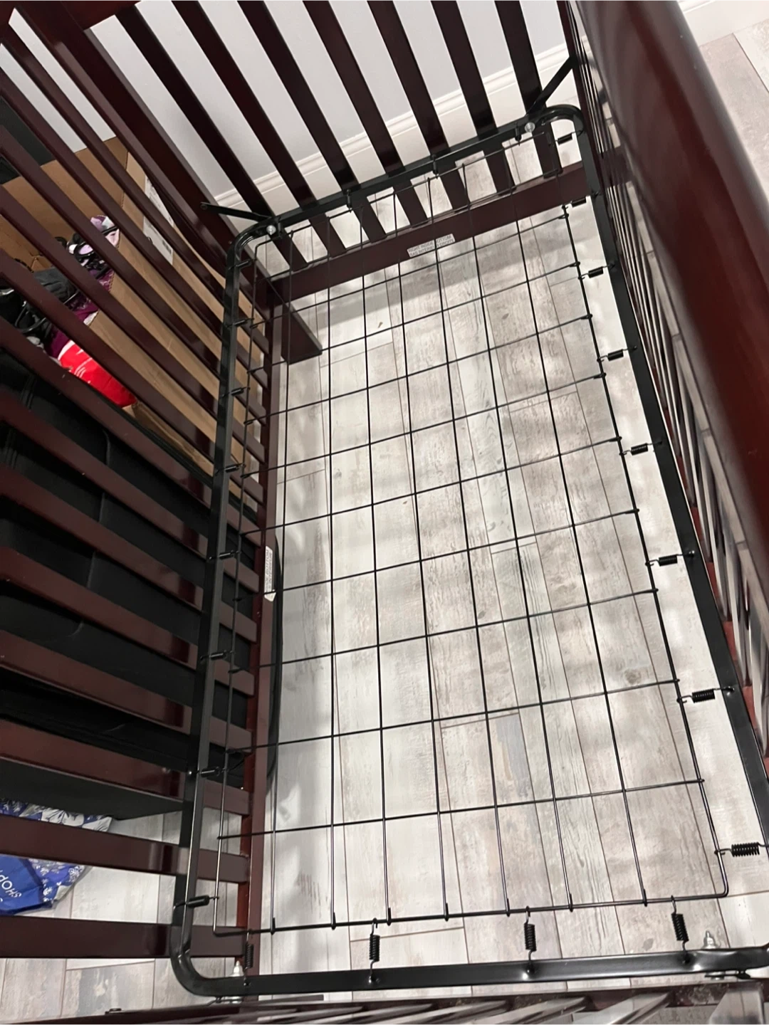 Selling a gently used convertible mini crib in a dark wood finish! It's in good condition and ready for a new home. Perfect for smaller spaces or as a secondary crib for grandparents' house. It's sturdy and has a classic design.